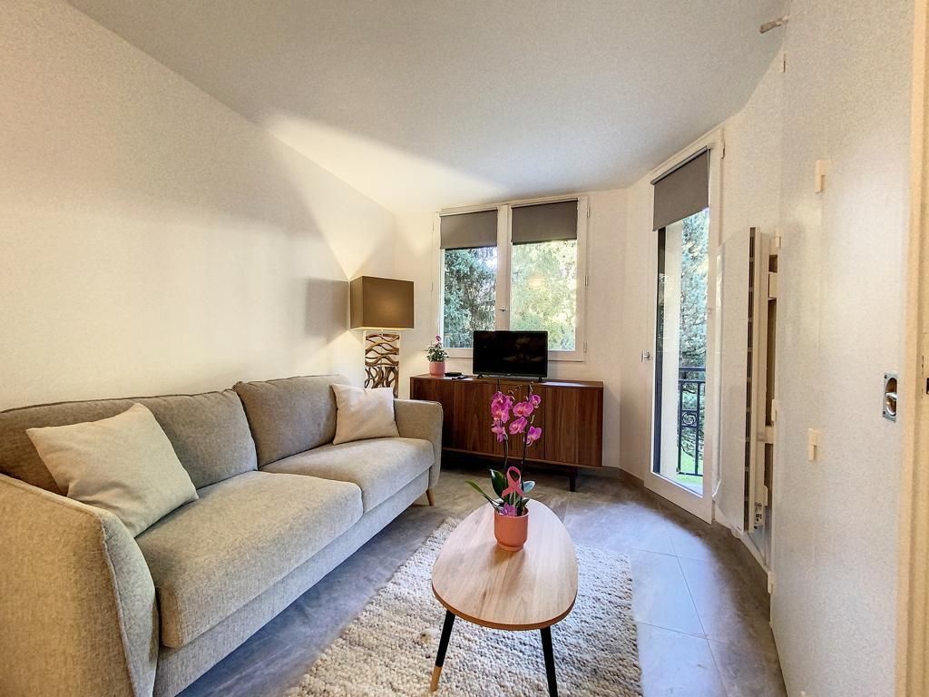 Apartamento charmoso no 5º andar com vista para o Mont Blanc, no coração do centro da cidade. 🛏Quarto: muito espaçoso, com armários e cama de casal 160/200 🛋Sala de estar: sofá de canto grande com tela plana curva, barra de som e iluminação ambiente. 🛀🏻Banheiro: banheira grande e máquina de lavar/secar. 🍽Cozinha: máquina de lavar louça, forno, fogão de indução, cafeteira Estacionamento privativo e elevador Ideal para casais ou pessoas que viajam sozinhas