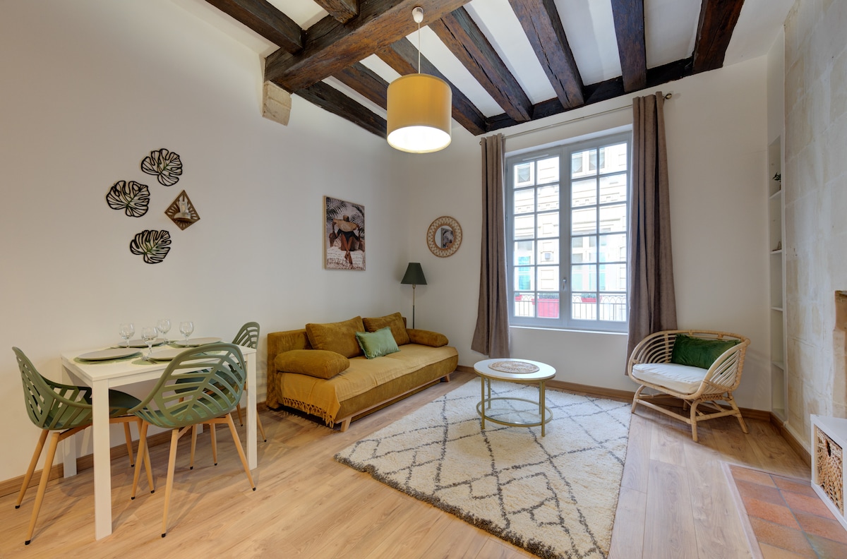 Bem-vindo ao nosso espaçoso T2 (60m2) no 1º andar de um edifício tranquilo no centro de Tours! Idealmente localizado no coração do centro histórico, nossa acomodação, totalmente equipada e remodelada, oferece uma experiência única. - Wi-Fi /máquina de café Nespresso/máquina de lavar roupa/máquina de lavar louça - Roupa de banho e roupa de cama fornecida - Sala de trabalho - Place Plumereau (1 min a pé), Rue Nationale (3 minutos a pé), Estação Ferroviária (15 minutos a pé) - Check-in e check-out 100% autónomos Tudo o que você precisa fazer é colocar suas malas para baixo!