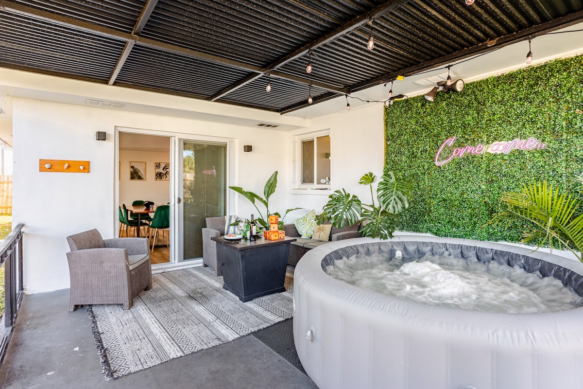 Fuja para o seu mini oásis privado nesta microcasa no quintal! Este retiro combina relaxamento e luxo, perfeitos para famílias, amigos ou casais. Relaxe em cadeiras de ovos penduradas em um deck espaçoso, rodeado por uma vegetação exuberante. Aproveite a piscina cintilante e peneirada com recursos aquáticos calmantes, emoldurados por paisagismo tropical. O uso da piscina está disponível das 10h às 20h diariamente. Localizado em um bairro tranquilo, perto de atrações, restaurantes e entretenimento. Reserve agora para uma estadia inesquecível!