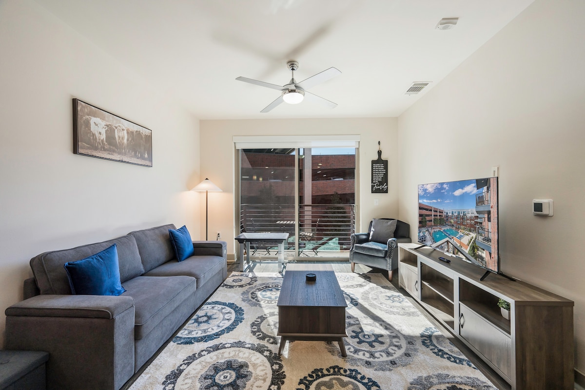 Caminhe até o estádio | Apartamento moderno de 2 quartos/2 banheiros com piscina e academia