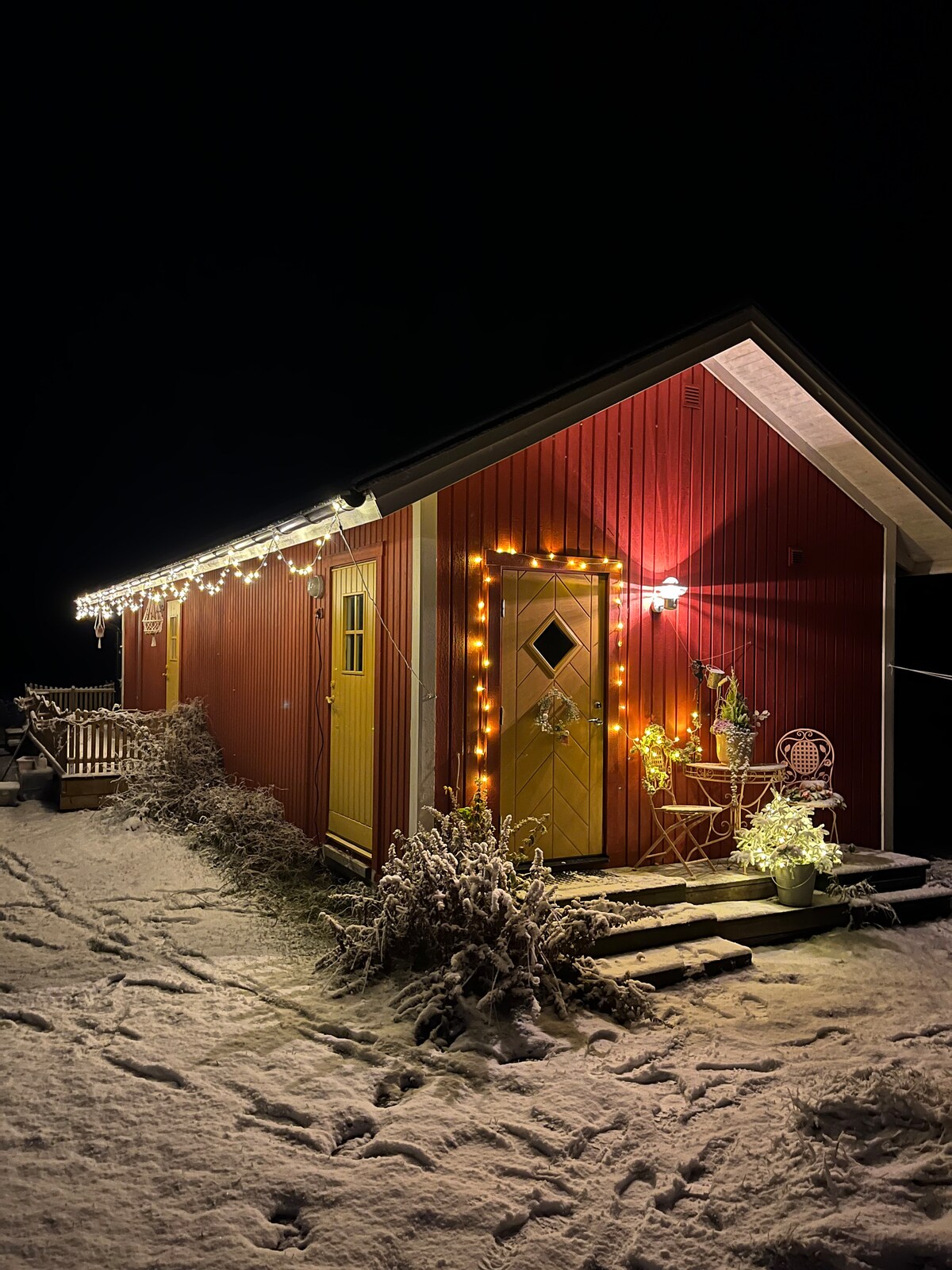 Casa com cozinha e banheiro no primeiro andar e quarto/sala de TV no andar superior, com vista para o lago. Fica no terreno onde moramos, uma família de dois adultos, duas crianças e um cachorrinho. Sensação de estar no campo, perto da floresta e da terra, trilhas para caminhadas e ciclismo, banhos e pesca em Sämsjön e Åsunden. Várias milhas de ciclovias pavimentadas, ideais também para esquis de rolamento, começando na porta de casa. Mediante acordo, é possível alugar um barco. Colheita de maçãs durante a temporada.