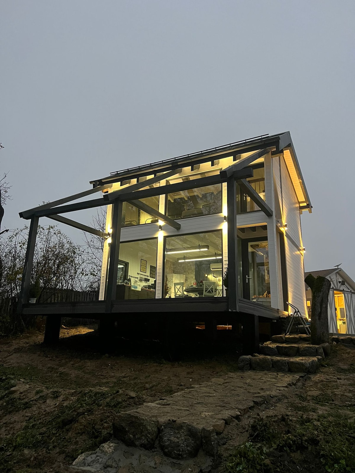 A casa foi construída em 2018 como uma casa de férias em família. Tem 2 quartos no andar de cima e um terraço com vista para o lago, no andar de baixo você tem uma sala de estar, banheiro e a cozinha aberta. Lá fora tem um terraço com uma área de estar, churrasqueira, um grande jardim e iglu. Cada canto da casa foi feito com amor, paixão e detalhes para você se desconectar da rotina diária. Decidimos não colocar TV, pois gostaríamos que você se conectasse com a natureza e passasse um tempo com os entes queridos ❤