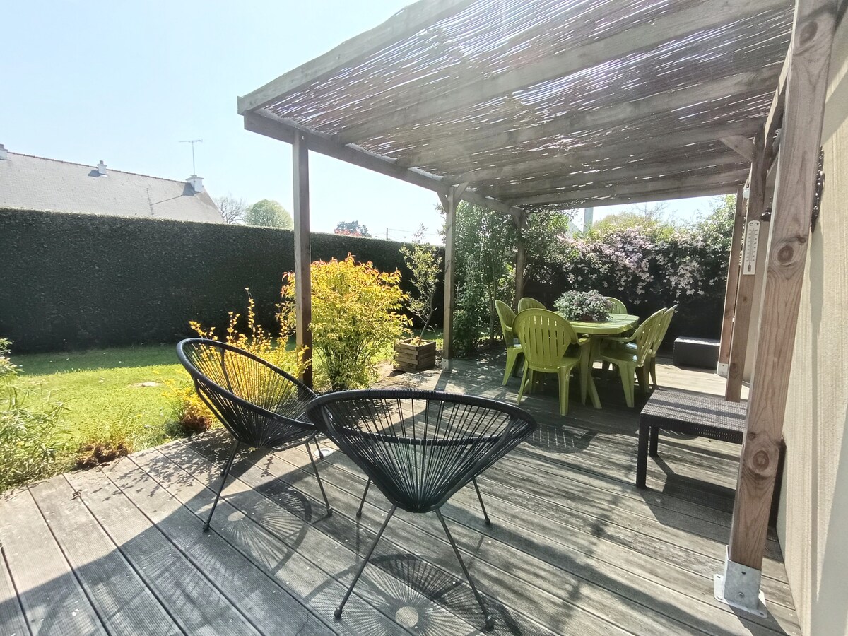Casa encantadora com localização ideal para passar férias agradáveis e fins de semana com familiares ou amigos. Vista para o mar. Conveniente! Localizado na trilha de caminhada pé "Gr 34", você tem acesso direto à praia "Godelins" (200 metros) para partidas para a casa para suas atividades como natação, remo, berços, kit-surf, etc.! !! Centro da cidade nas proximidades com lojas e mercados.