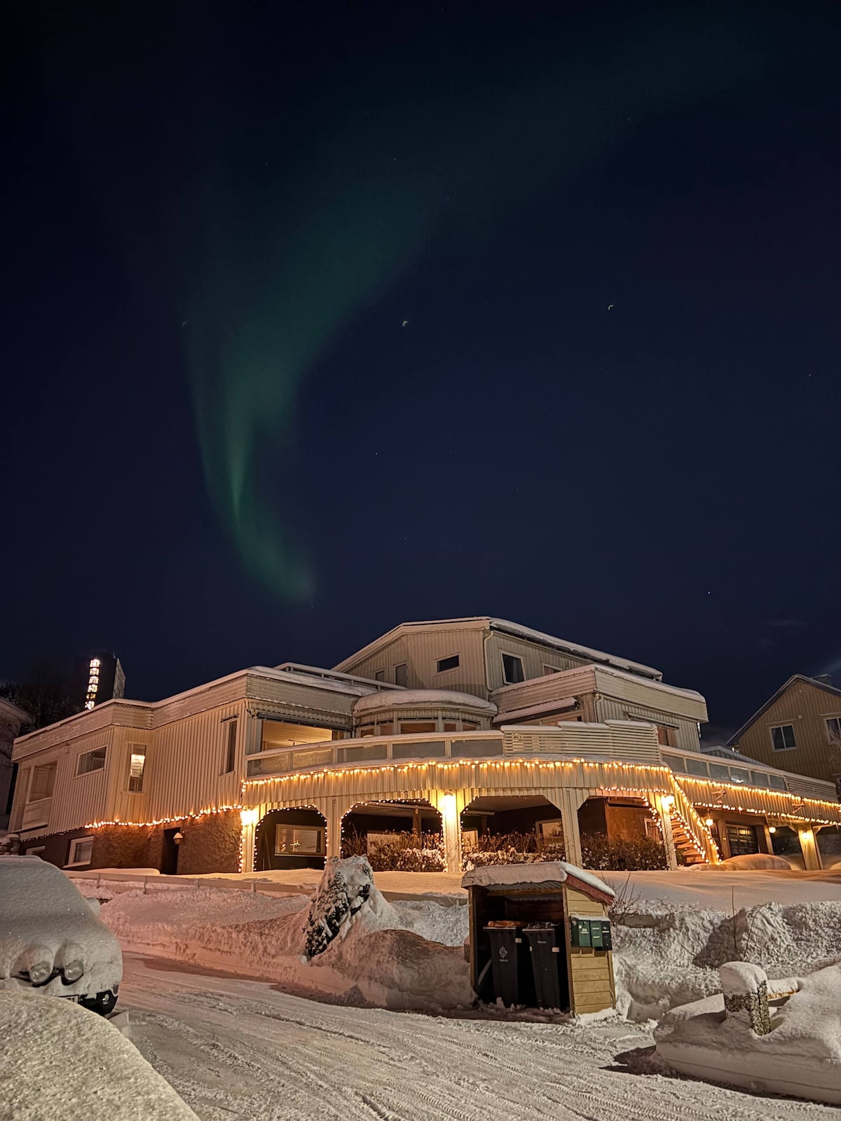 Apartamento acolhedor e tranquilo, padrão premium, elegantemente decorado e bem equipado. Localizado a 2 km do centro da cidade, ao lado do teleférico e da Catedral do Ártico. Estacionamento gratuito. Trilha para a montanha começa do lado de fora. Vista fantástica sobre Tromsø e as montanhas. Ônibus direto do aeroporto e do centro da cidade, a 800 metros do supermercado, pizzaria, shopping center e restaurantes. Café, chá, sal, pimenta e óleo estão disponíveis. Acesso à máquina de lavar por acordo.