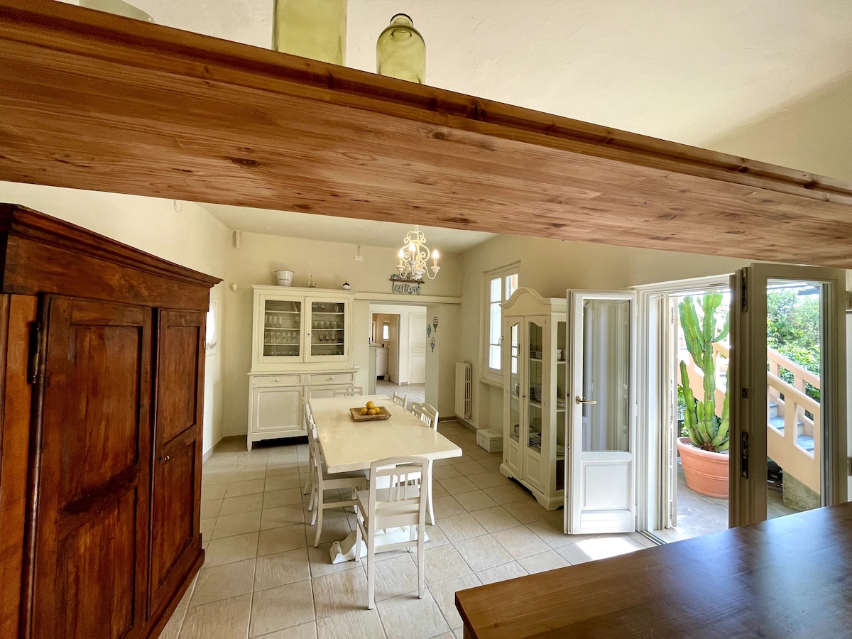 Vila elegante cercada por vegetação recém-reformada com vista para a ilha de Bergeggi. Grande terraço com capa de vela equipado com banheira de hidromassagem, churrasqueira e cozinha, pia, máquina de gelo, chuveiro ao ar livre com água quente, lounge de aperitivos, Chaise-Longue e grande mesa de jantar. Na sala de estar você vai encontrar a TV (Netflix), sala de estar e mesa de jantar a casa é completada com grande cozinha 2 quartos e 2 banheiros. Há 2 vagas de estacionamento privativo, Wi-Fi e ar condicionado.