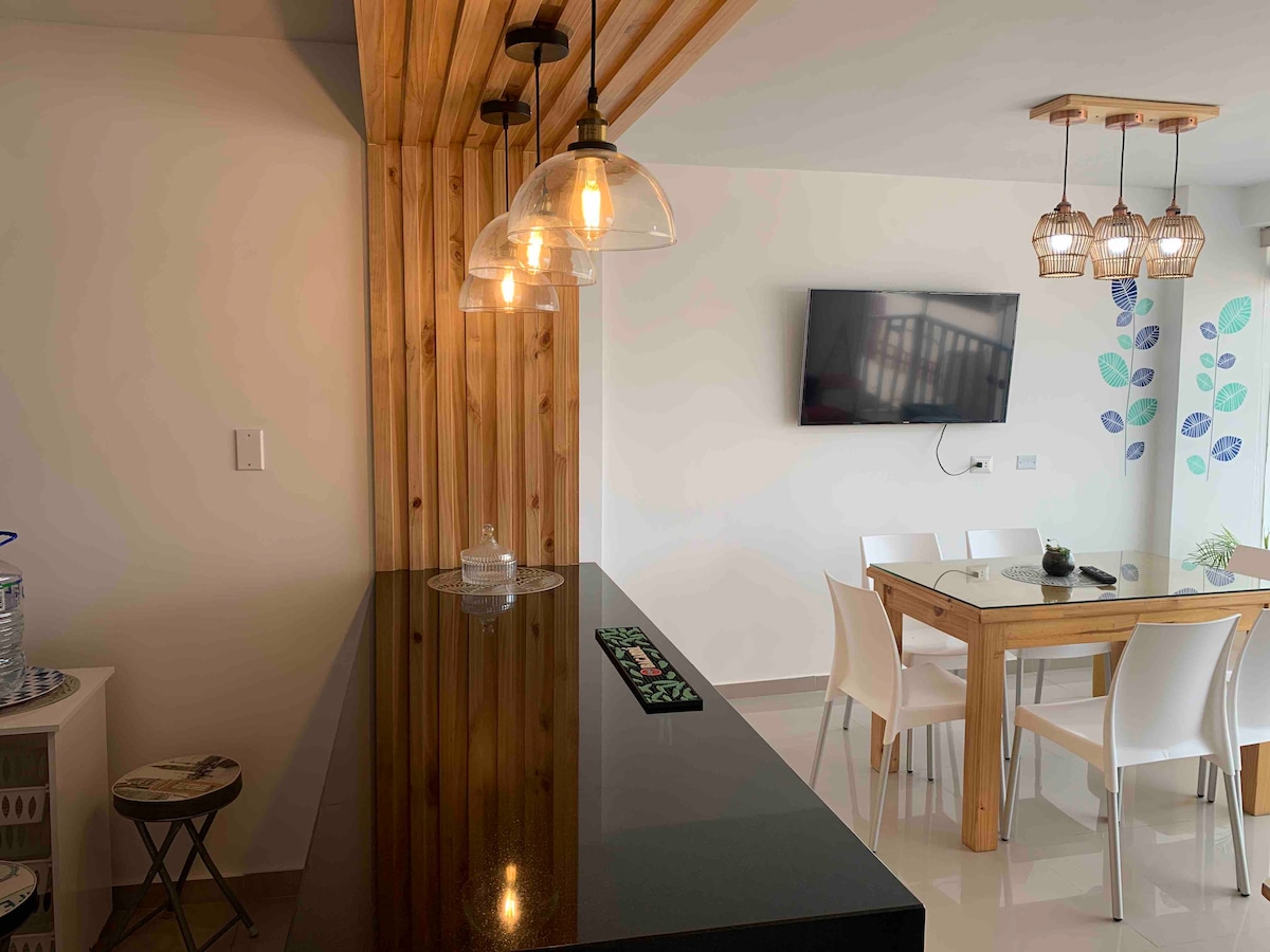 A dois quarteirões da praia. Um apartamento de luxo com uma vista incrível do pôr do sol a partir do terraço. Localizado no último andar do edifício. É no coração de Huanchaco e você estará perto de tudo (lojas de surf, restaurantes, padarias e bares). Distância do apartamento ao Centro da Cidade de Trujillo é de cerca de 12 km /22 min. E a 5 km/ 10 min do aeroporto 6º andar (acesso somente por escadas)
