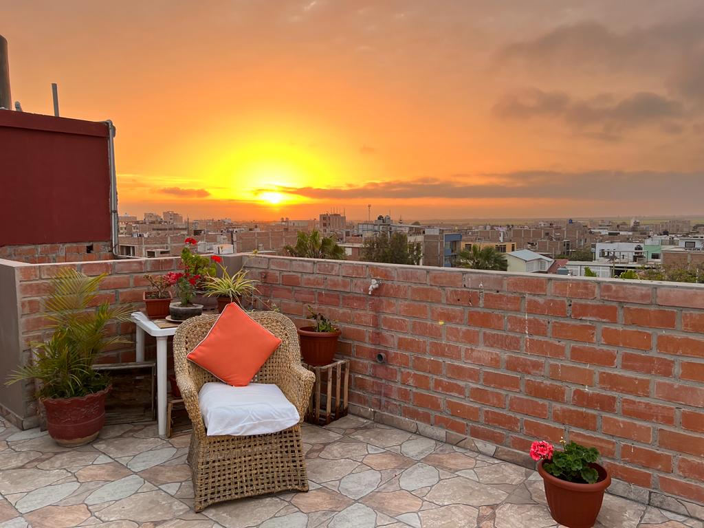 En nuestro alojamiento estarás cerca de todo, un espacio tranquilo y acogedor con todo lo que necesitas, las áreas compartidas están equipadas con lo necesario para tu estadía. A tan solo 2 cuadras de la playa, a 1 cuadra del mercado y a 3 del mirador de Huanchaco: la Iglesia. Disfruta de las olas y los atardeceres de Huanchaco en nuestro espacio. Te recomendamos revisar todas las alternativas que tenemos para ti
