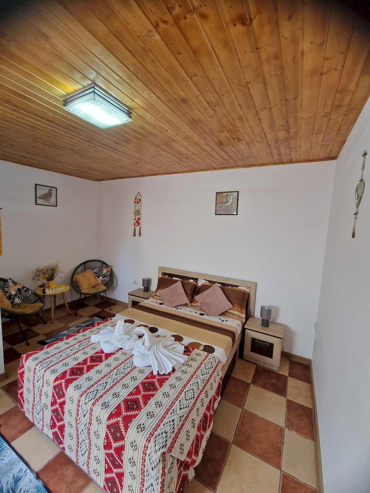 Cama e café da manhã incluídos! A casa de Matei Murighiol oferece 1 unidade de alojamento auto-suficiente, equipada com Wi-Fi, ar condicionado, churrasqueira e terraço A unidade de alojamento é composta por uma suíte de 50 m², composta por quarto, sala de estar, banheiro, terraço e quintal. O mirante está totalmente equipado e equipado com churrasqueira, fogão, geladeira, cafeteira. O quintal tem espreguiçadeiras, cama elástica, rede, cadeira de balanço. A unidade também organiza viagens privadas no Delta do Danúbio!