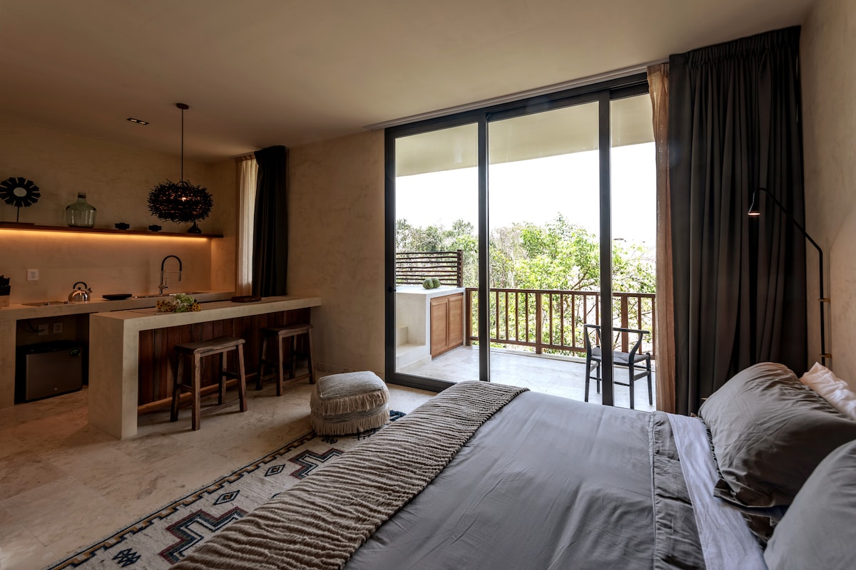 Loft Jungle Oasis com piscina de mergulho privativa e terraço! Fuja para este elegante loft no 2º andar com um terraço privativo e piscina de mergulho com vista para a exuberante selva! Desfrute de bicicletas gratuitas durante a sua estadia, uma cozinha totalmente equipada e segurança 24 horas por dia, 7 dias por semana, para sua tranquilidade. Projetado para casais, viajantes solitários e nômades digitais, este retiro moderno é acolhedor, tranquilo e cercado pela natureza a apenas 15 minutos da praia e do centro da cidade! Relaxe em sua cama king size, mergulhe em sua piscina ou explore cenotes, praias e muito mais nas proximidades!
