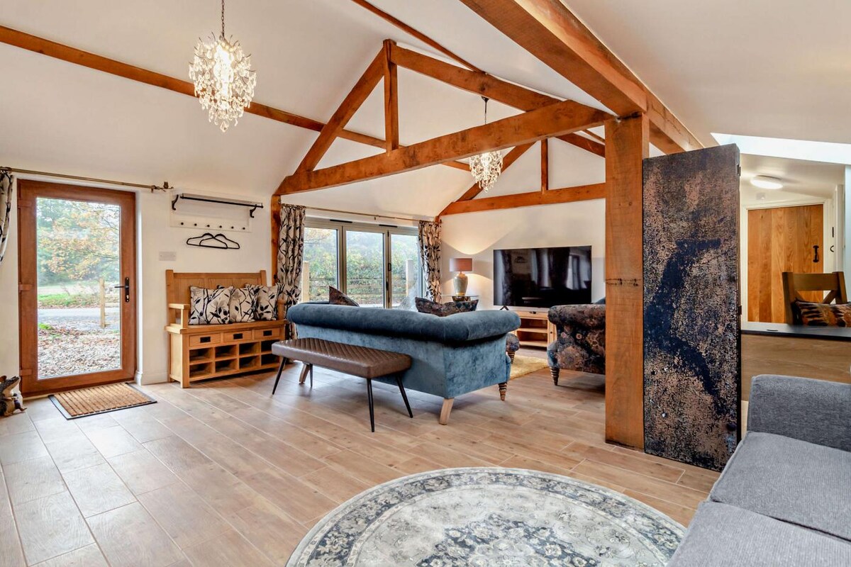 Crossing Retreat é um celeiro moderno revestido de madeira que foi renovado para dar aos hóspedes um gostinho do campo com um toque peculiar. As grandes portas dobráveis ao longo de um lado do Retiro permitem que os hóspedes abram seu espaço de estar para o exterior, perfeito para aquelas noites quentes. Nos meses mais frios, proporciona uma ótima fonte de luz, permitindo que os hóspedes apreciem os campos circundantes, que proporcionam vistas encantadoras. O projetor e a mesa de bilhar são super adições para mantê-lo entretido.
