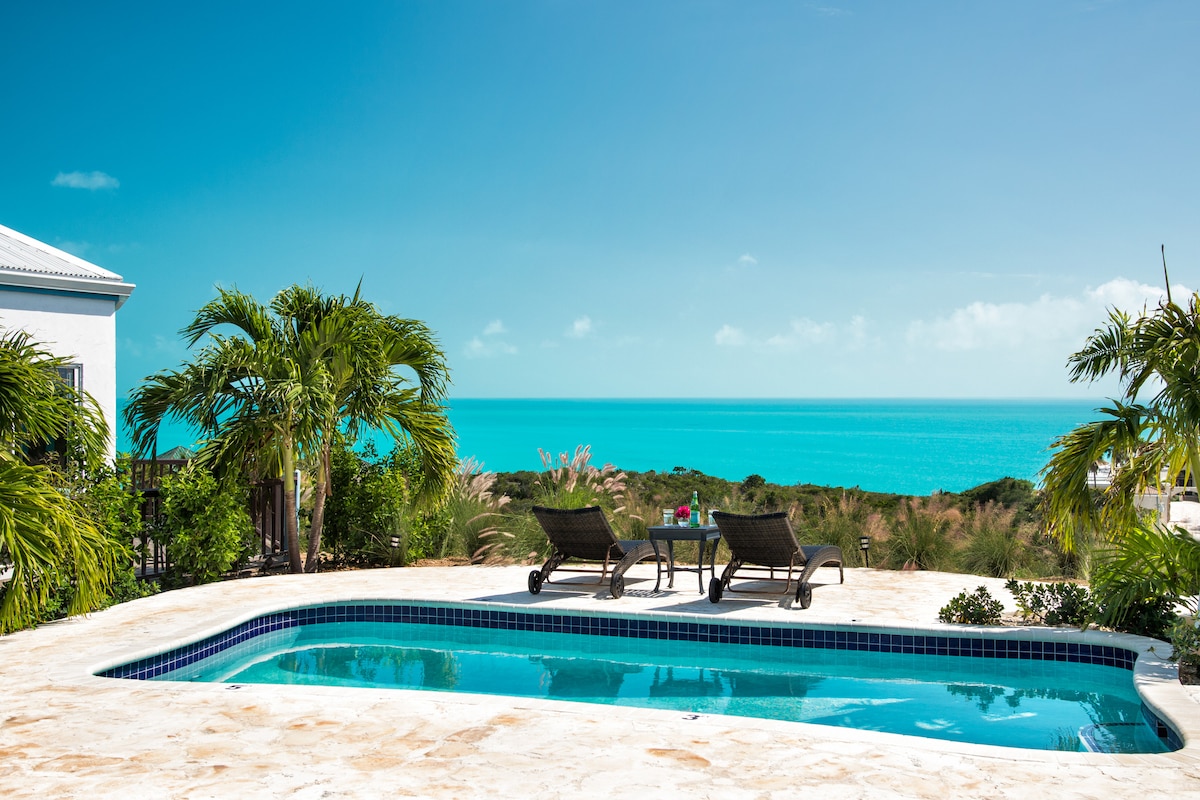 Casa de campo em Caicos, 2 quartos/2 banheiros à beira-mar com piscina