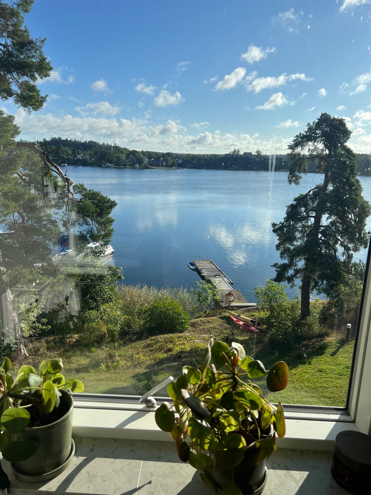 House by the sea on a jetty👍Enjoy the hot tub and wood-burning sauna. Fantastic outdoor environment. Modern and fully equipped house, tastefully decorated. Perfect experience for those who want to have a relaxing and beautiful time on the water🌞 If you want to be active: canoe, hike in the nearby national park, go for a run or go boating. All this just 30 minutes from Stockholm! Imagine spending a few days or weeks in this environment 😀 - All space is privately available to you as guests.