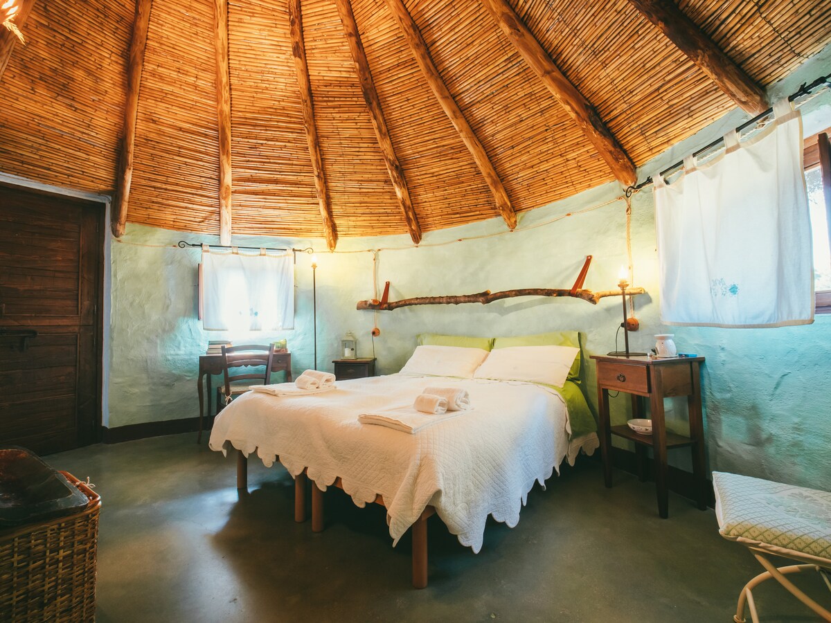 4 cabanas ecoluxury em pedra e madeira com telhados em forma de cone, caminhos com óleos essenciais, cromoterapia e aromaterapia, jardins sensoriais e lounges ao ar livre vintage. Cada cabana está ligada a uma planta da Sardenha, à sua cor e sua essência. Você terá tudo o que precisa para o café da manhã em seu quarto. Enriqueça a experiência com tratamentos de bem-estar e massagens de relaxamento, ioga e sessões de meditação! Tudo aqui é tratado em detalhes com amor, é um oásis de paz no Parque Natural de Tepilora!