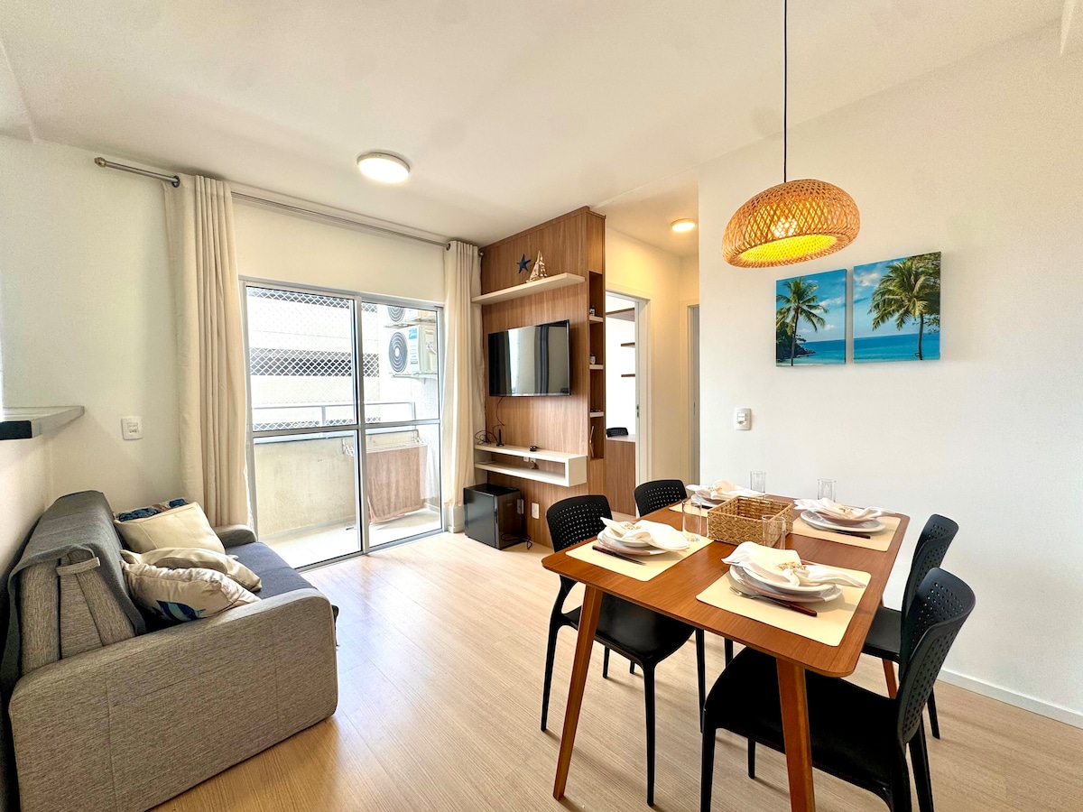 Apartamento com vista para o mar de todos os cômodos, e com uma bela vista para um morro. Localizado com frente para a praia e de costas ao morro. Mar calmo, ideal para a prática de caiaque, stand up e diversão das crianças! Água cristalina na grande maioria dos dias. Bares, restaurantes e banana boat ao redor! Todos os quartos possuem ar condicionado. Wi-fi 100 megas Tv smart. OBSERVAÇÃO: A taxa de limpeza é para o hóspede receber o apartamento limpo! O 5º hóspede dormirá num colchão extra