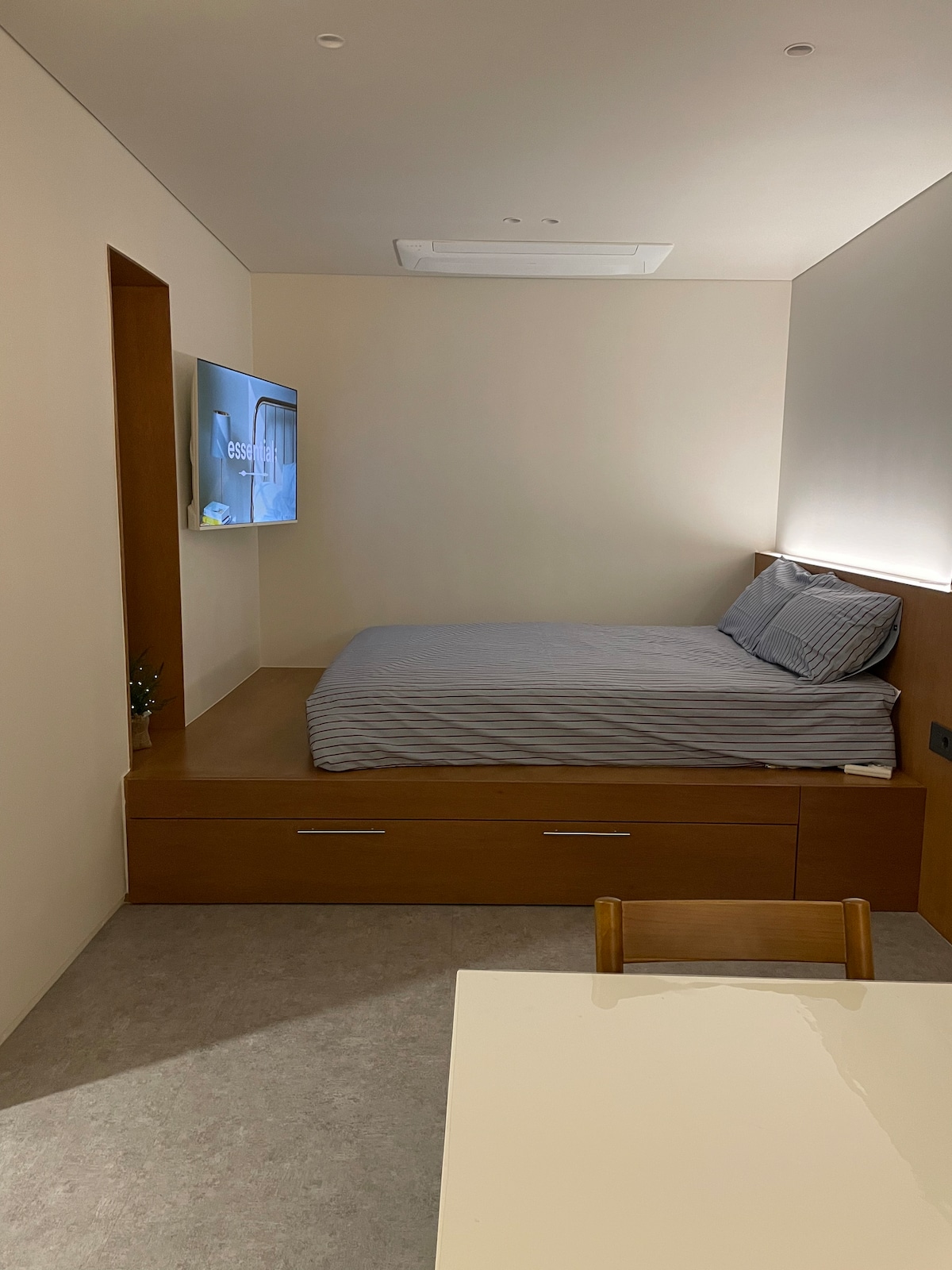 안녕하세요, 서울 해방촌에 위치한 공간입니다. 신흥시장에서 도보로 3분, 해방촌 메인 거리에서 5분, 남산 둘레길 10분 거리에 위치하고, 건물 1층에 편의점이 있습니다. 주택가이기 때문에 숙소에서 큰 소음은 불가합니다. 파티나 큰 소음을 유발할 수 있는 모임은 이 공간과 적합하지 않음을 강조해서 알려드립니다. 이 공간은 한 분에서 두 분을 수용하기 위해 구성되었습니다. 새로운 공간에서 쉼과 즐거움을 원하시거나 혹은 개인 작업을 하시고자 하는 분들을 생각하였습니다. *숙소는 한 개의 방과 욕실이 있습니다. *와이파이, 빔프로젝트, 스피커, 읽을 수 있는 책들, 세면도구, 식기류가 준비되어 있습니다. <숙소 유의사항> - 저희 해방촌의 작은 방 숙소는 조용한 숙소입니다. 따라서 쾌적한 환경과 보안상의 문제로 예약하신 게스트만이 출입할 수 있으며 이를 어길시 페널티 적용되니 이용에 참고 부탁드립니다. (페널티 : 이용수칙위반 비용 발생 및 퇴실 조치)
