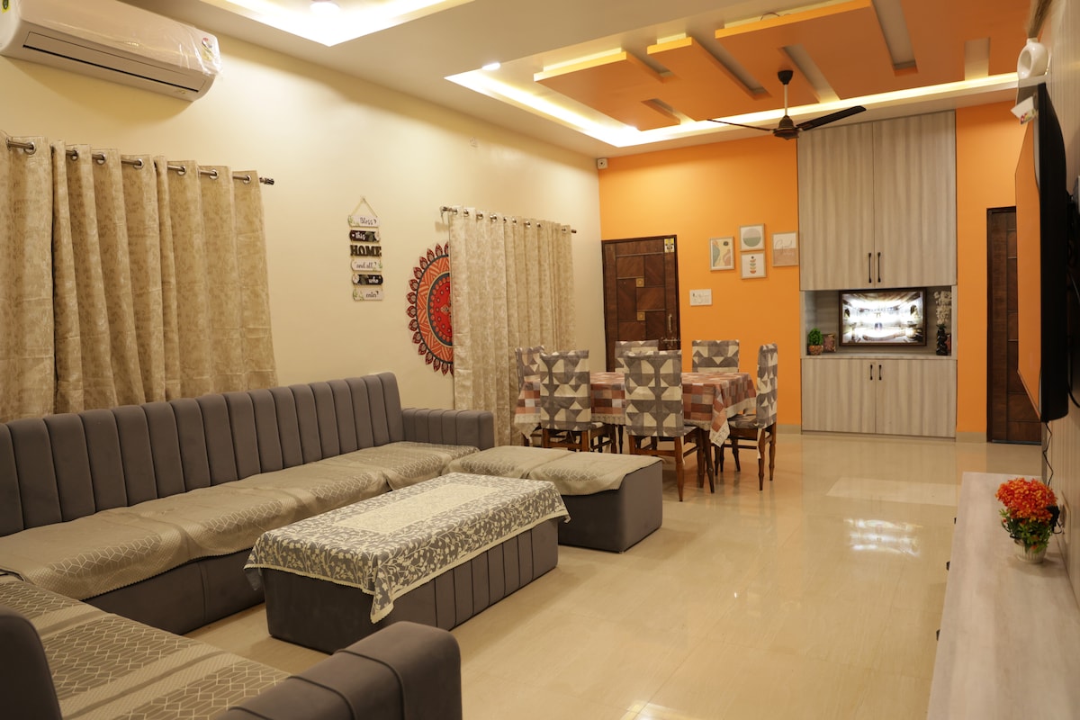 Estadia em casa de família de luxo em Ujjain Localização 🌟 privilegiada: a poucos minutos do Templo Mahakaleshwar, do Templo Harsiddhi e do Rio Shipra. Interiores 🛋️ elegantes: o charme tradicional encontra o luxo moderno em áreas de estar espaçosas. 🛏️ Dois quartos luxuosos: camas king-size com ar condicionado, Wi-Fi e roupas de cama premium. Cozinha 🍳 totalmente equipada: prepare suas refeições em grande estilo. Jardim 🌿 relaxante: perfeito para chá, meditação e relaxamento. Experiência 📍 personalizada: dicas e recomendações locais disponíveis. 🅿️Carro