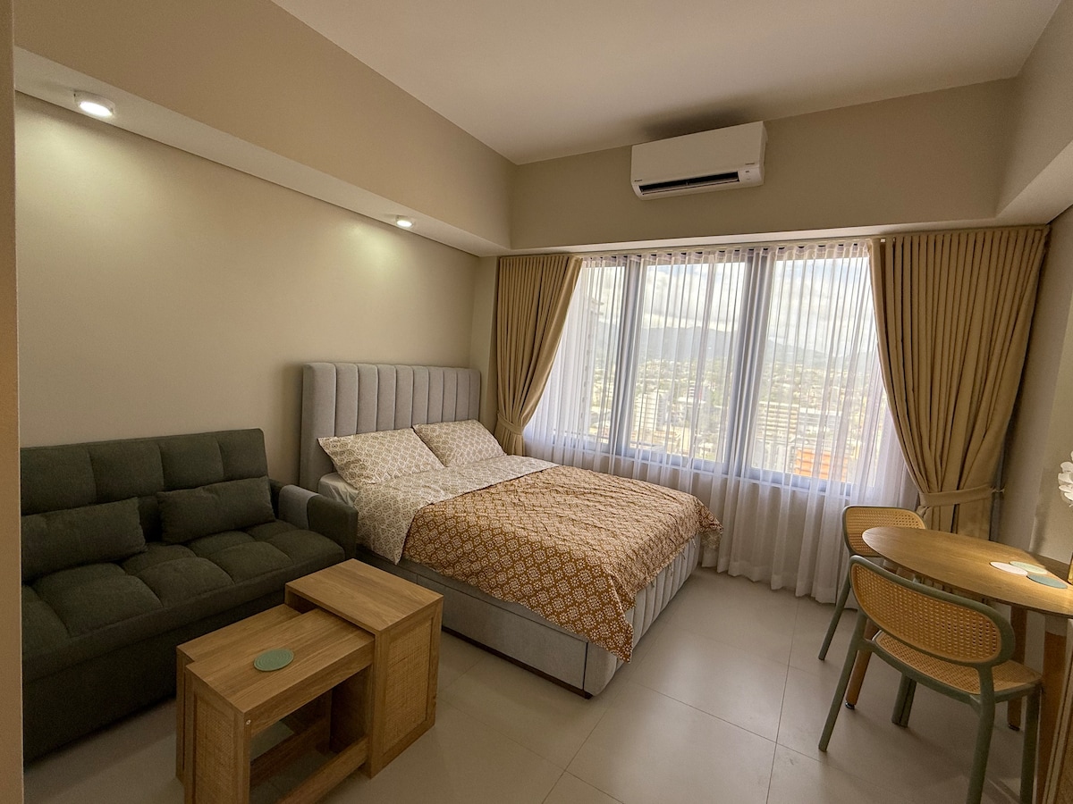 Este estúdio tem tudo o que você precisa para uma estadia confortável: uma cozinha completa, um banheiro completo com chuveiro quente e frio, uma cama queen size, ar condicionado, uma TV smart de 55 polegadas e Wi-Fi. Convenientemente localizado no coração da cidade alta de Cebu, você encontrará lojas, escolas, hospitais, restaurantes e opções de entretenimento a uma curta caminhada de distância. É a base perfeita para o seu tempo na cidade de Cebu!