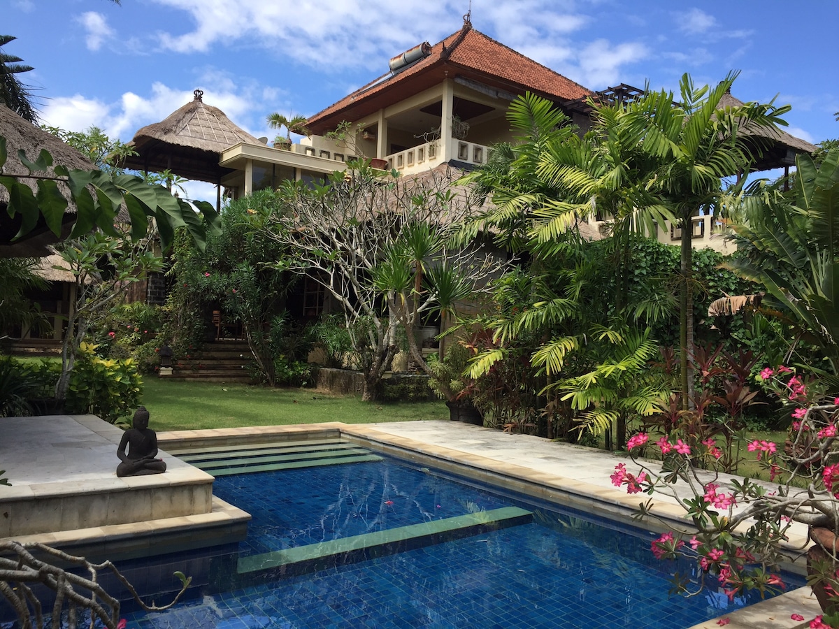 Tome sol ao redor da piscina privada de 10 metros no pátio exuberante deste retiro tranquilo. Esta casa combina a arquitetura californiana de meados do século com a essência tropical de Bali. Móveis sob medida foram construídos e criados sob medida para este espaço. NOTA GERAL: Eu também sou o proprietário da propriedade ao lado. As reservas para ambas as vilas podem ser feitas em conjunto para grupos maiores. Por favor, verifique outra propriedade no meu perfil.