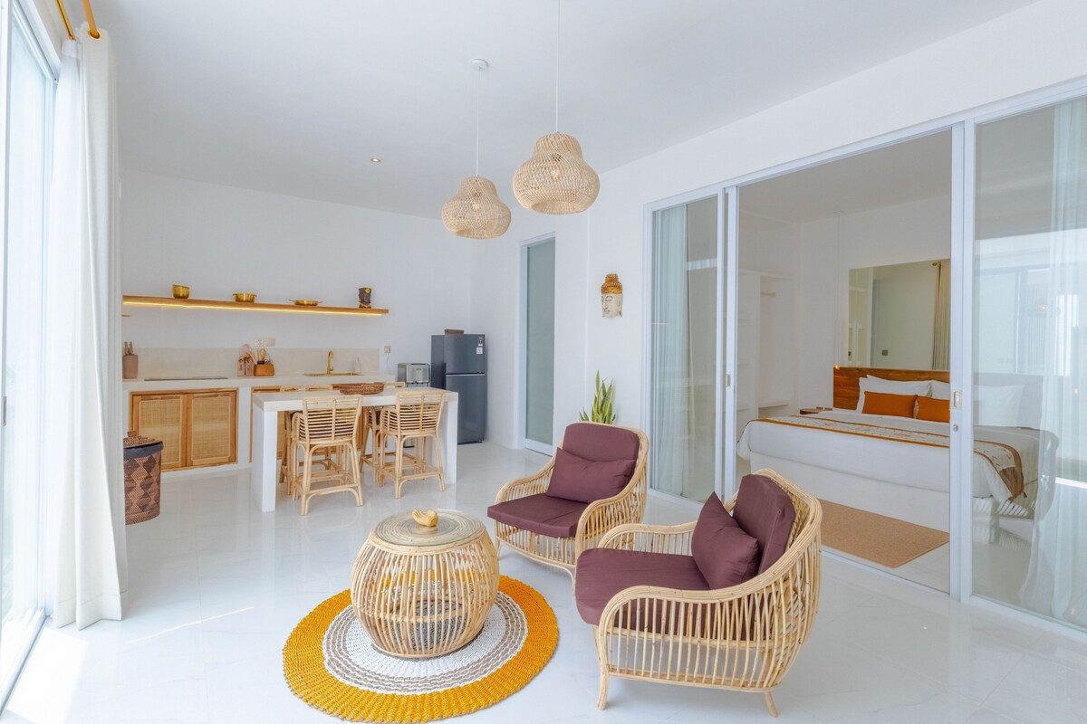 Enjoy 50% Off No construction noise during Ramadan 10.3-7.4 Please NOTE that there is construction taking place directly opposite the villas. From 8:00 AM to 5:00 PM, you may experience noise and reduced privacy. We sincerely apologize. Welcome to your escape villa just a short walk from the stunning Balangan Beach. This brand-new villa is thoughtfully designed for comfort, privacy, longterm stays – perfect for digital nomads, couples, surfers.