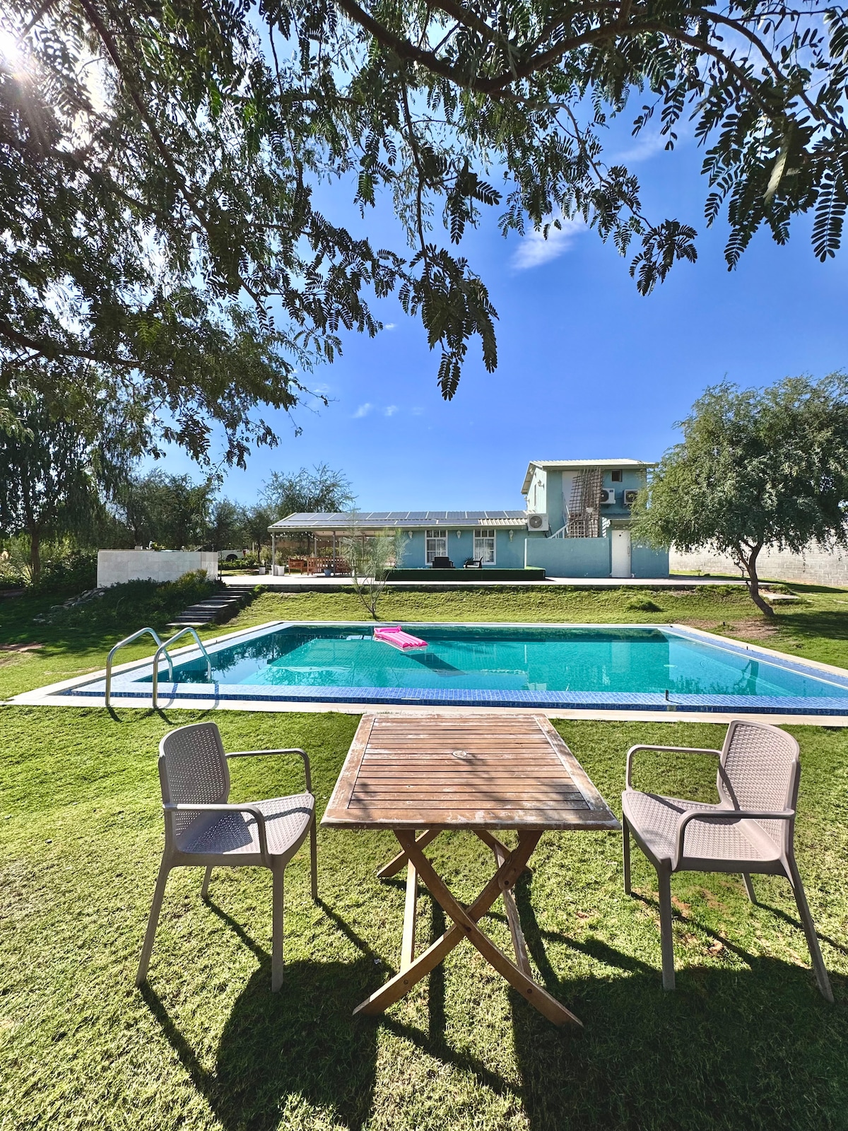 Desfrute de uma estadia relaxante nesta encantadora vila privada, a apenas 40 minutos de Dubai.Perfeito para famílias e amigos, oferece piscina privativa com espreguiçadeiras, áreas de estar espaçosas e um ambiente aconchegante e caseiro.Aproveite três quartos confortáveis, uma TV de 75”, Wi-Fi e som surround.A apenas 10 minutos da Praia de Al Hamra e de Mina Al Arab, um refúgio convidativo onde conforto, privacidade e momentos memoráveis se unem.