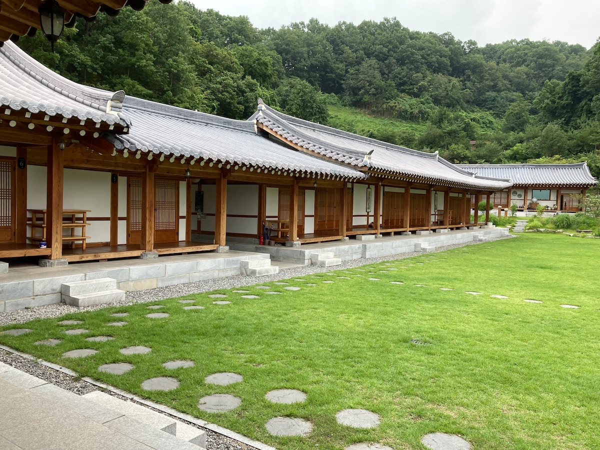 Preço bom durante a semana/Chalé Hanok na floresta (2 quartos, sala de estar, quintal, etc.)/2 pessoas/TV grátis/até 15 pessoas/1 quarto adicional possível