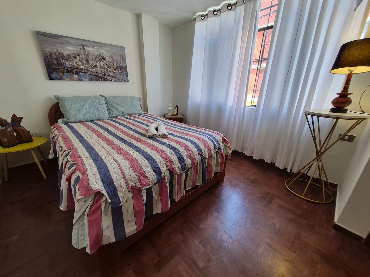 Bienvenid@ a nuestro apartamento en Chiclayo – La Victoria. Estamos ubicados en una de las zonas más bonitas y seguras de Chiclayo. A 5min del aeropuerto, del Real Plaza y del centro de la ciudad, a 2 cuadras del Jockey Club y a pocos pasos del Smart fit y los mejores restaurantes. Contamos en la habitación con una cama Drimer QUEEN. Tendrás acceso a Wi-Fi, en la sala contamos un Smart TV y Netflix. La cocina equipada y vajilla completa. Estoy para ayudarte en lo que necesites. Te esperamos!
