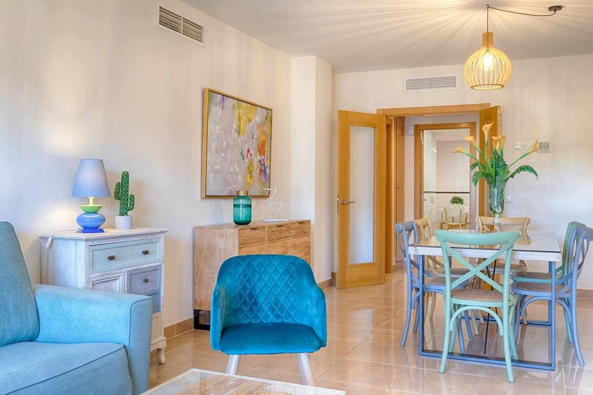 Precioso apartamento con jardín privado cerca de campos de golf Disfruta de este encantador apartamento en una urbanización tranquila, ideal para descansar y relajarse. Cuenta con 2 dormitorios, 2 baños y jardín privado, con excelentes calidades en todo el alojamiento. Situado cerca de los mejores campos de golf de la zona. Debido a la sequía decretada por el gobierno, las piscinas estarán cerradas desde el 30 de septiembre. Consulta normas adicionales de la propiedad.