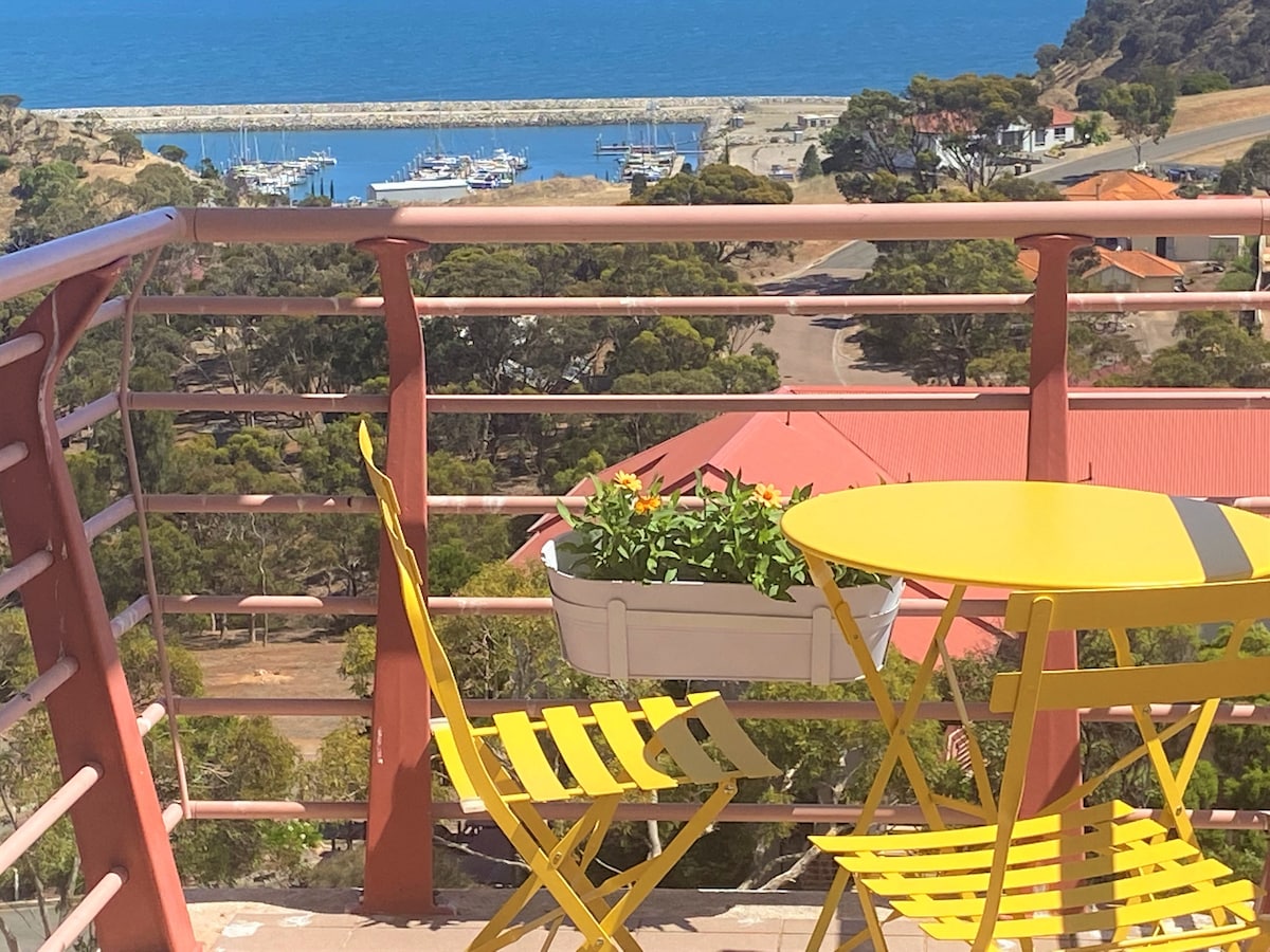 3 quartos, 2 camas queen size e 2 de solteiro. Serviço de roupa de cama completo, exceto toalhas de praia. Localizado na icônica Horseshoe Bay Distância a pé de cafés e lojas. Desfrute de uma cerveja e um churrasco Vistas limitadas da varanda. Esta unidade não está na frente do edifício e não tem vista para a baía de Horseshoe. No entanto, uma curta caminhada e você está lá. Perfeito para famílias pequenas. Escadas para o nível um. Não permite animais de estimação. Proibido fumar. Churrasco na varanda Pátio compartilhado e gramados da frente com vista para o Oceano Austral e a Baía de Horseshoe.