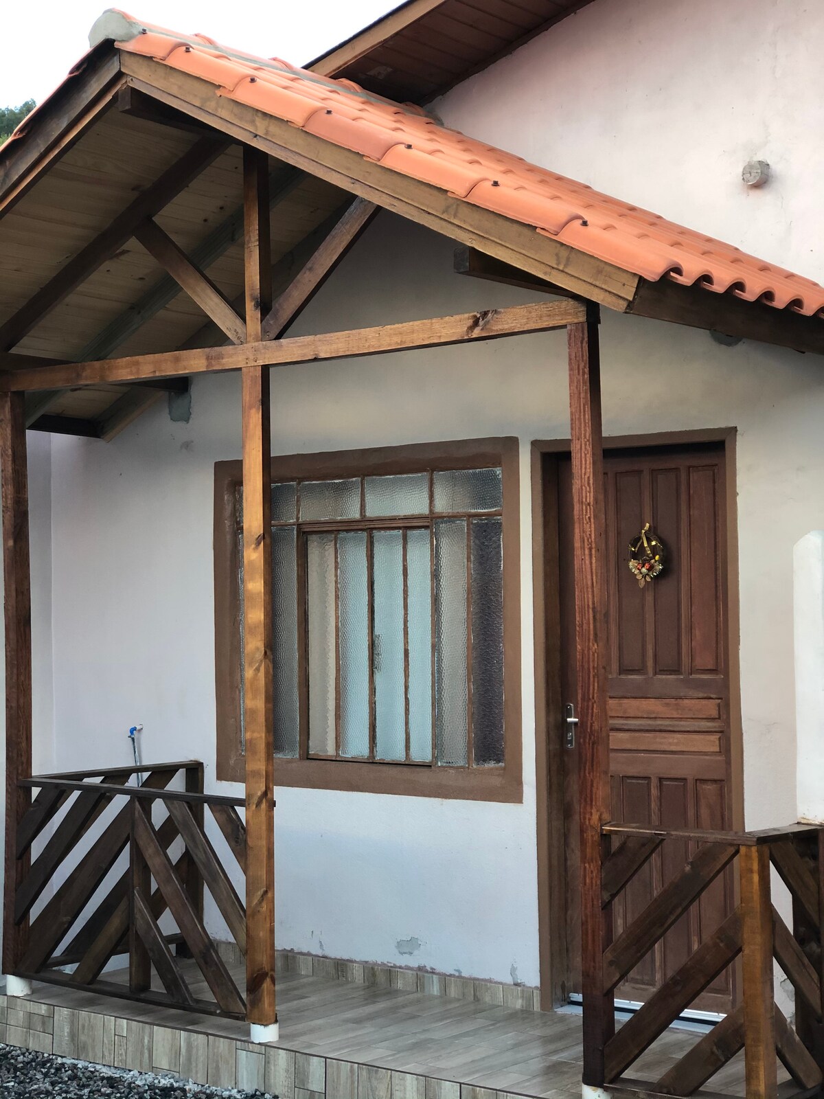 É um chalé rústico, confortável e aconchegante para duas pessoas, eventualmente acompanhadas de uma criança ou pessoa jovem. Tem sala, cozinha e banheiro. O quarto de dormir (colchão Ema novíssimo) fica no mezanino. Um deck em torno do chalé completa o espaço, rodeado de verde da floresta de araucária e do jardim. Para conviver com o frio existe um calefator a lenha. Existe outra casa no terreno. O lugar fica a 10km da Esquina de Urubici, ou a 8,5 km do portal do Caminhos da Colônia.