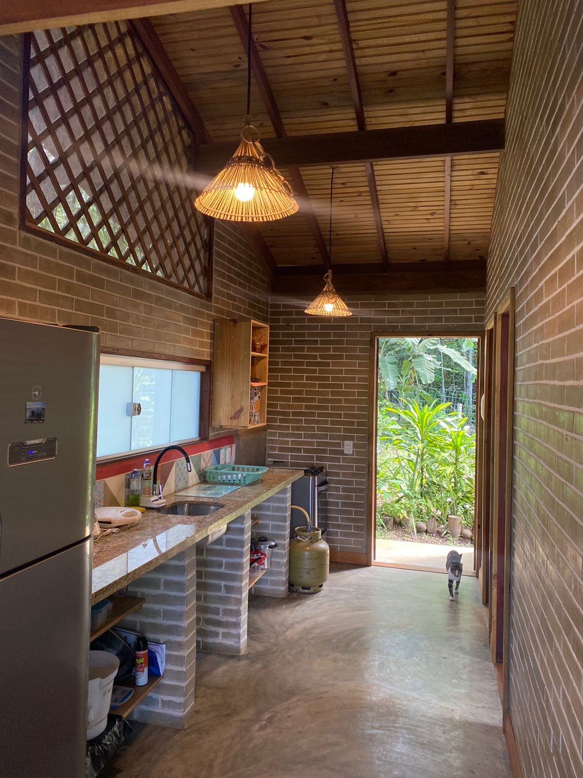 PERFEITO PARA CASAIS: Refúgio sustentável em CHALÉ de bioconstrução (taipa, adobe, garrafas coloridas e cordwood) Cozinha completa integrada à varanda, acolhedor e funcional. Chuveiro quente para relaxar após os passeios. Situado no Sítio Vila Dendê, com mais duas casas e vistas para áreas de preservação permanente (APPs) nos dois lados. 1,9 km da Vila de Serra Grande 2,5 km da Praça 3,9 km da Praia do Pé de Serra 20 km de Itacaré 39 km de Ilhéus Estacionamento gratuito 35 m² de puro charme