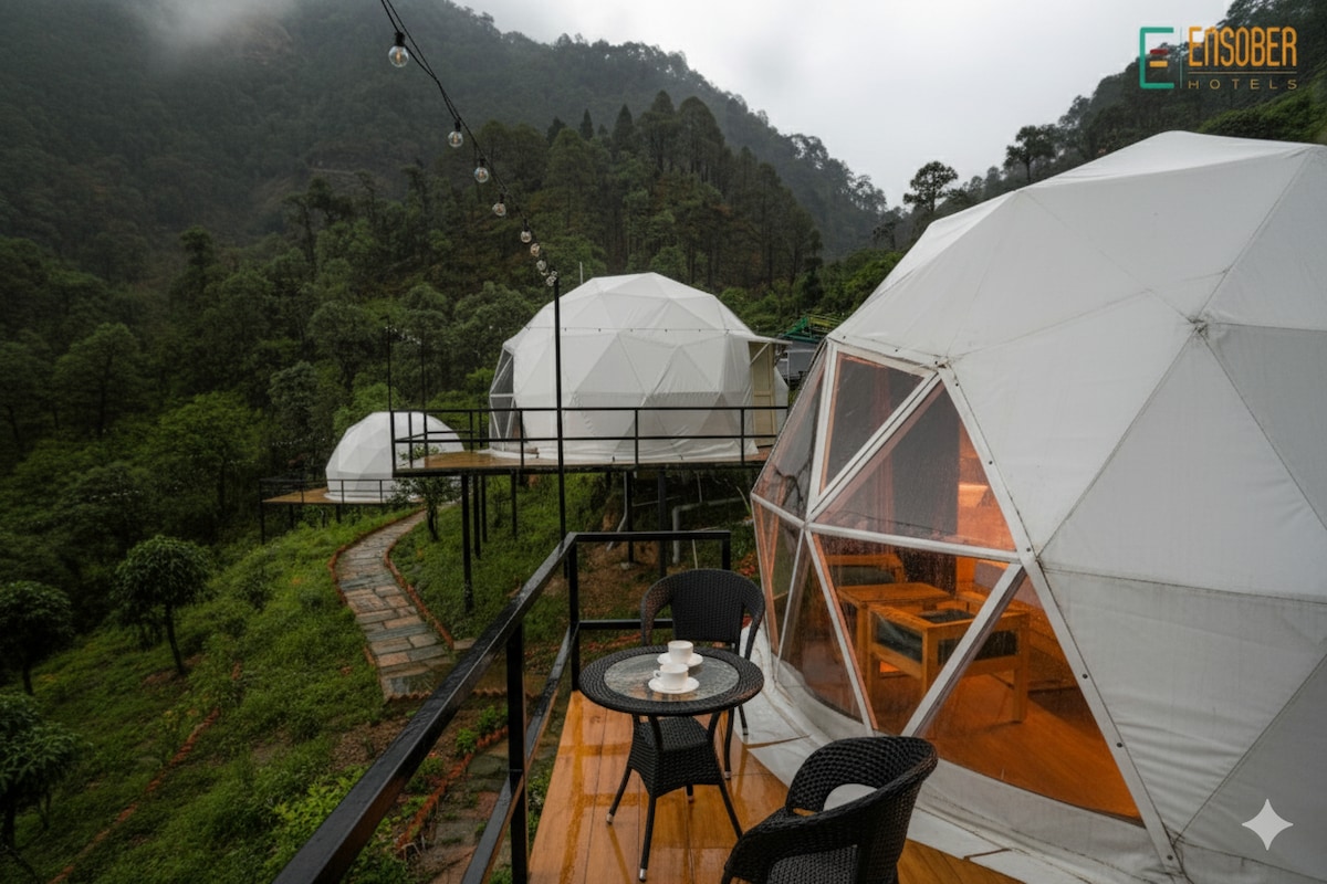 Cada cúpula é um refúgio privado de tranquilidade, oferecendo vistas panorâmicas sobre os vales exuberantes, colinas ondulantes e o sinuoso rio Ganges abaixo. Os interiores são uma mistura harmoniosa de design contemporâneo e charme rústico, com móveis premium, roupas de cama macias e comodidades modernas que atendem a todas as suas necessidades. Quer você esteja descansando em seu terraço privado, bebendo uma xícara de chai enquanto observa o nascer do sol.