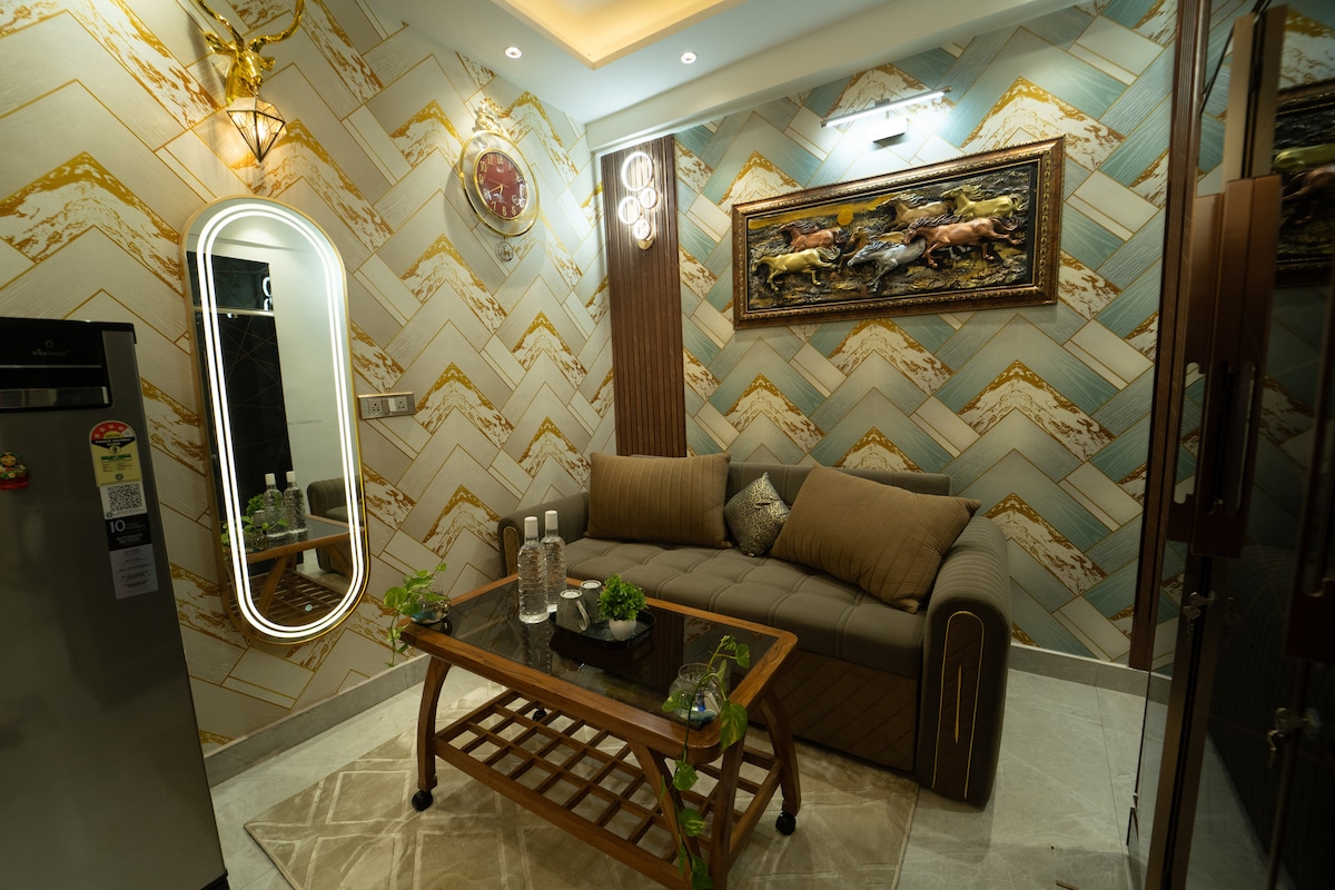 Uma unidade de estúdio totalmente mobiliada, elegante e luxuosa com uma bela vista de uma paisagem verde cênica durante o dia e luzes da cidade à noite. Lugar perfeito para relaxar e descontrair para viajantes de negócios, estudantes ou casais. A Internet de alta velocidade está disponível e pode suportar trabalho remoto. Estacionamento gratuito e seguro disponível no local. Estamos localizados a 5 minutos de carro do Expo Mart, a 8 minutos de Pari Chowk e do Jaypee Resort. Comida caseira está disponível.