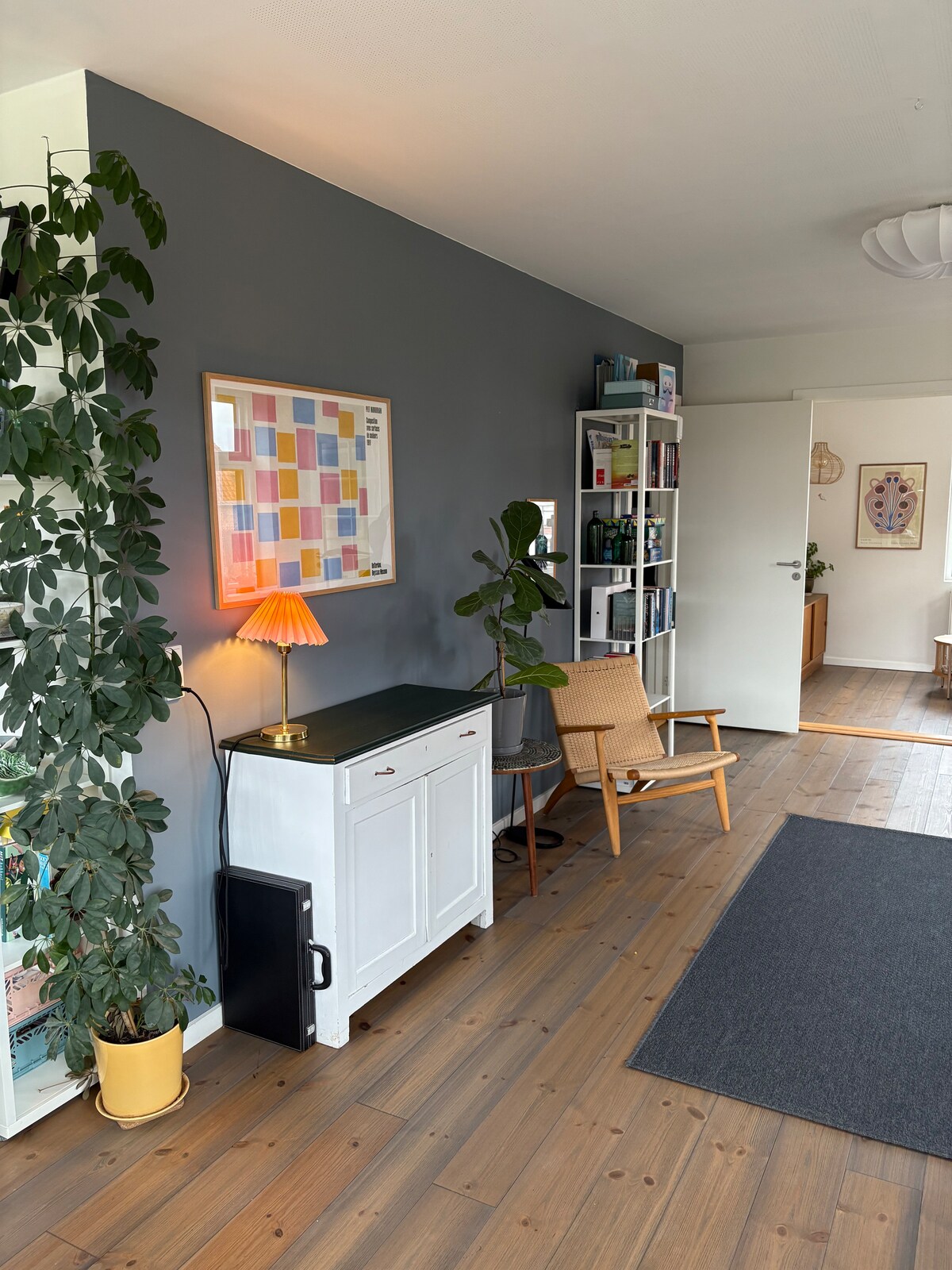 Apartamento acolhedor de 2 quartos com varanda grande, com uma sensação criativa e pessoal. Situado no último andar e com uma grande varanda. Cheio de luz, charme, plantas e instrumentos. Cozinha e banheiro na forma original da década de 1970. 1 quarto, 1 banheiro, 1 entrada/hall, 1 grande varanda e 1 grande cozinha e sala de estar. Na parte agitada de Copenhague chamada Nordvest, a 850 m do metrô, a 180 m do ônibus diretamente para o centro da cidade, a 700 m da área de estacionamento gratuito, a 500 m do aluguel de bicicletas.