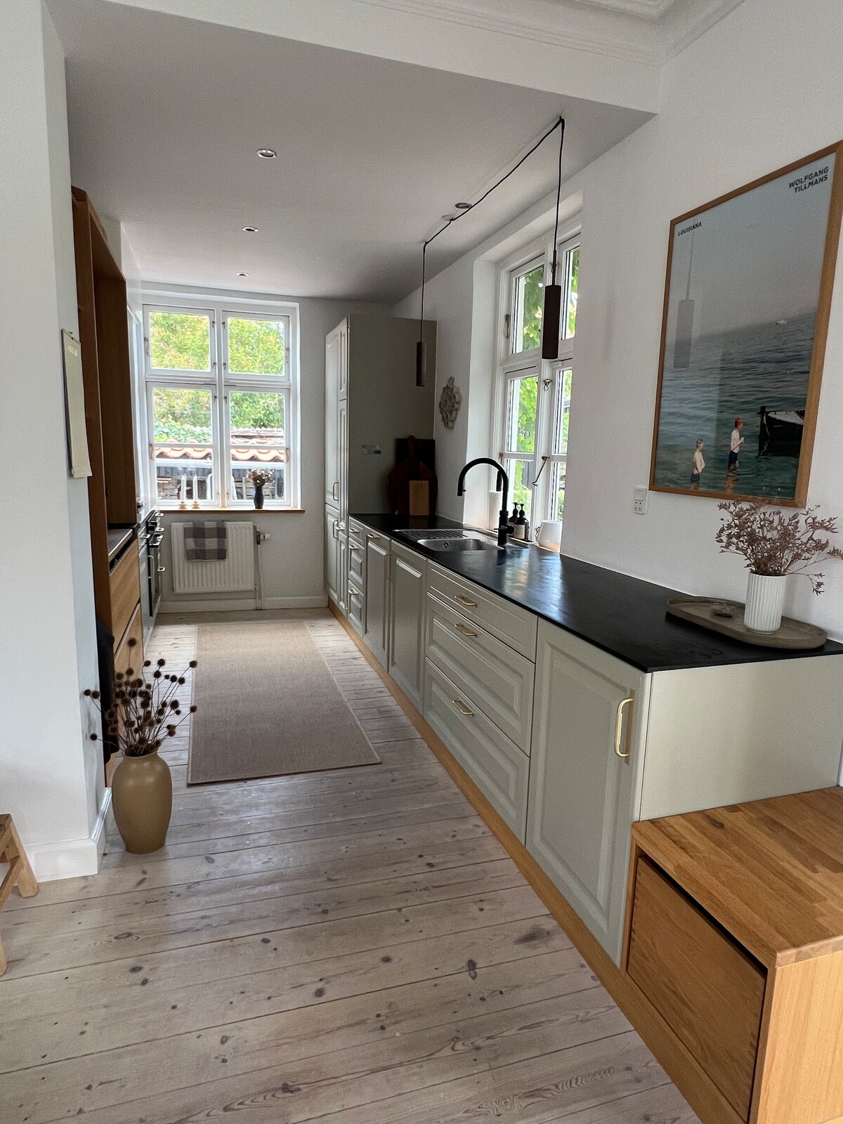 Unique and magnificent private apartment in an unbeatable location at the heart of Inner Copenhagens middle age area. Your own “town house” with a private entrance from a quit sidestreet. A high-end luxury spread over 140 sqm, you stay in a fusion Art Gallery luxury apartment Design furniture, hand built kitchen, wooden floors. high ceilings, contemp. art. Historic estate built in 1789 once a theater This place is also perfect for business meetings / work stays of longer or shorter periods