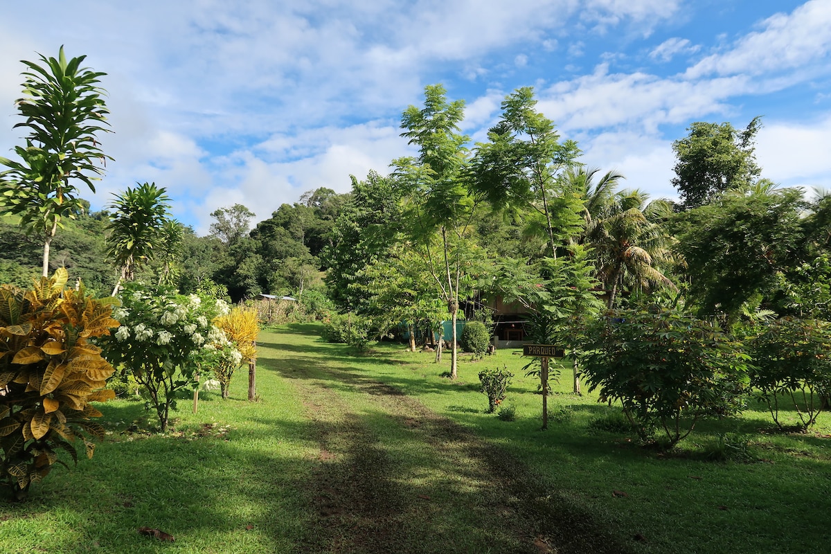 Uma casa de luxo na selva da montanha situada em 60 acres de floresta tropical isolada repleta de 5 cachoeiras e trilhas privadas. Tucanos e vida selvagem em abundância em nosso cenário de encosta. Casa principal de 5 quartos (preço inclui 9 hóspedes) 3 quartos no edifício do jardim estão disponíveis a um custo extra de US$ 49/noite cada. Totalmente equipado com café da manhã diário incluído. Capacidade máxima de 20 hóspedes. Limpeza diária e concierge incluídos. Estamos a 3,5 horas do aeroporto SJO e a 1 hora do parque Manuel Antonio. A 30 minutos do oceano em Dominical.