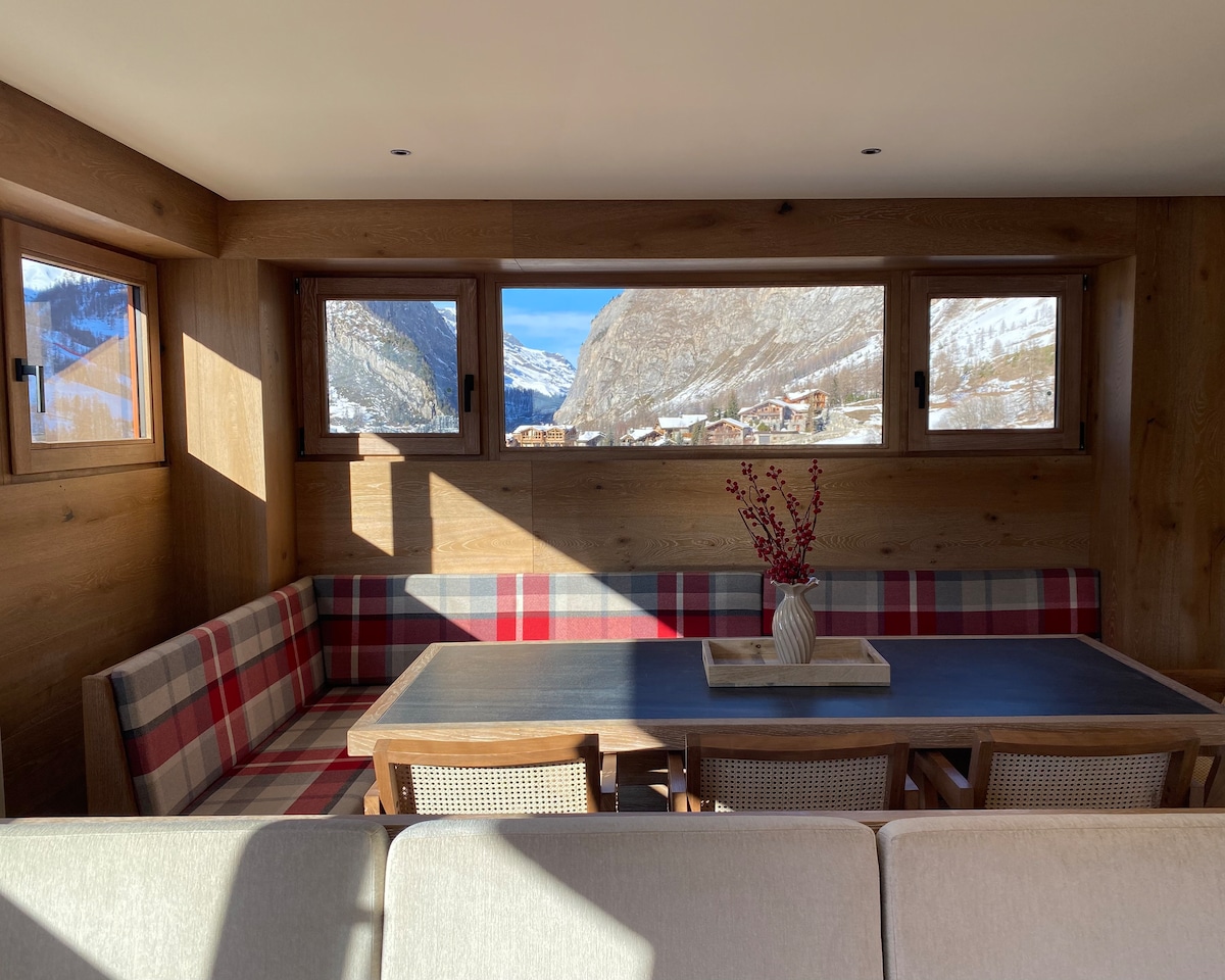 Bem-vindo a La Smala, um novo retiro alpino de 130 m² no coração de Val d'Isère, pronto até meados de novembro. Acomoda 8 a 10 pessoas em 4 quartos com decoração étnica chique, vibrações aconchegantes, cores quentes, detalhes kilim e papéis de parede elegantes. Área de estar aberta com varanda, lareira e cozinha moderna. Estadias de domingo a domingo, roupa de cama completa, 8 minutos a pé do teleférico de esqui. Entre em contato conosco para reservar sua inesquecível escapada alpina para suas férias com amigos e familiares