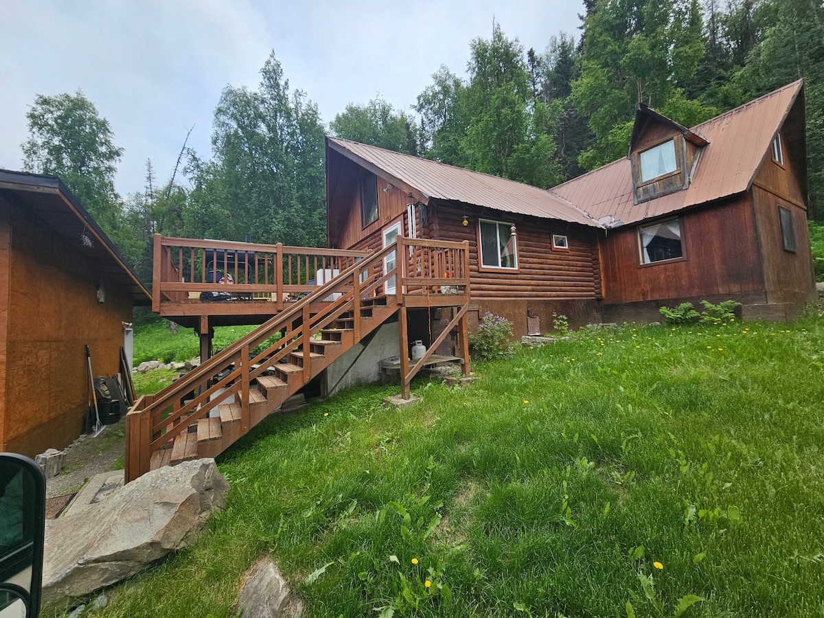 Aprecie as vistas de 360 graus do deck, relaxe na sauna nas margens do riacho ou desfrute de uma fogueira crepitante na linda sala grande cheia de móveis de madeira exclusivos. A cozinha foi feita para entreter com um fogão a gás de 6 bocas e uma enorme mesa de madeira que acomoda facilmente 8 pessoas. Caminhe, pesque, esquie, reme ou mergulhe bem na sua porta. Ele está localizado fora da Tok Cutoff Hwy em uma estrada pavimentada, está a caminho de Anchorage. Isso inclui apenas a casa principal. As cabanas estão em um anúncio separado.