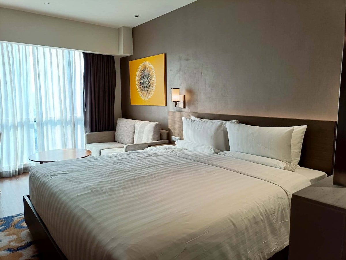 Espaçosa suíte de hotel privativa de 27,23 m² (~293,10 pés quadrados) aconchegante e relaxante no 14º andar do LANCASTER HOTEL MANILA perto de MRT Shaw, Shangrila Mall, Greenfield District, Megamall, Star Mall EDSA Shaw e WCC. Ver mais... 🟩Ambiente interior aconchegante do hotel Cama 🟩queen size + colchão ortopédico Banheira de🟩 hidromassagem 🟩Acesso gratuito à piscina no terraço 🟩Wi-Fi ultrarrápido de 500 MBPs 🟩Smart TV UHD 4K de 43" + barra de som para som cinematográfico 🟩Netflix + HBO Max + Disney Plus + Prime Video + Spotify 🟩Alto-falante Bluetooth