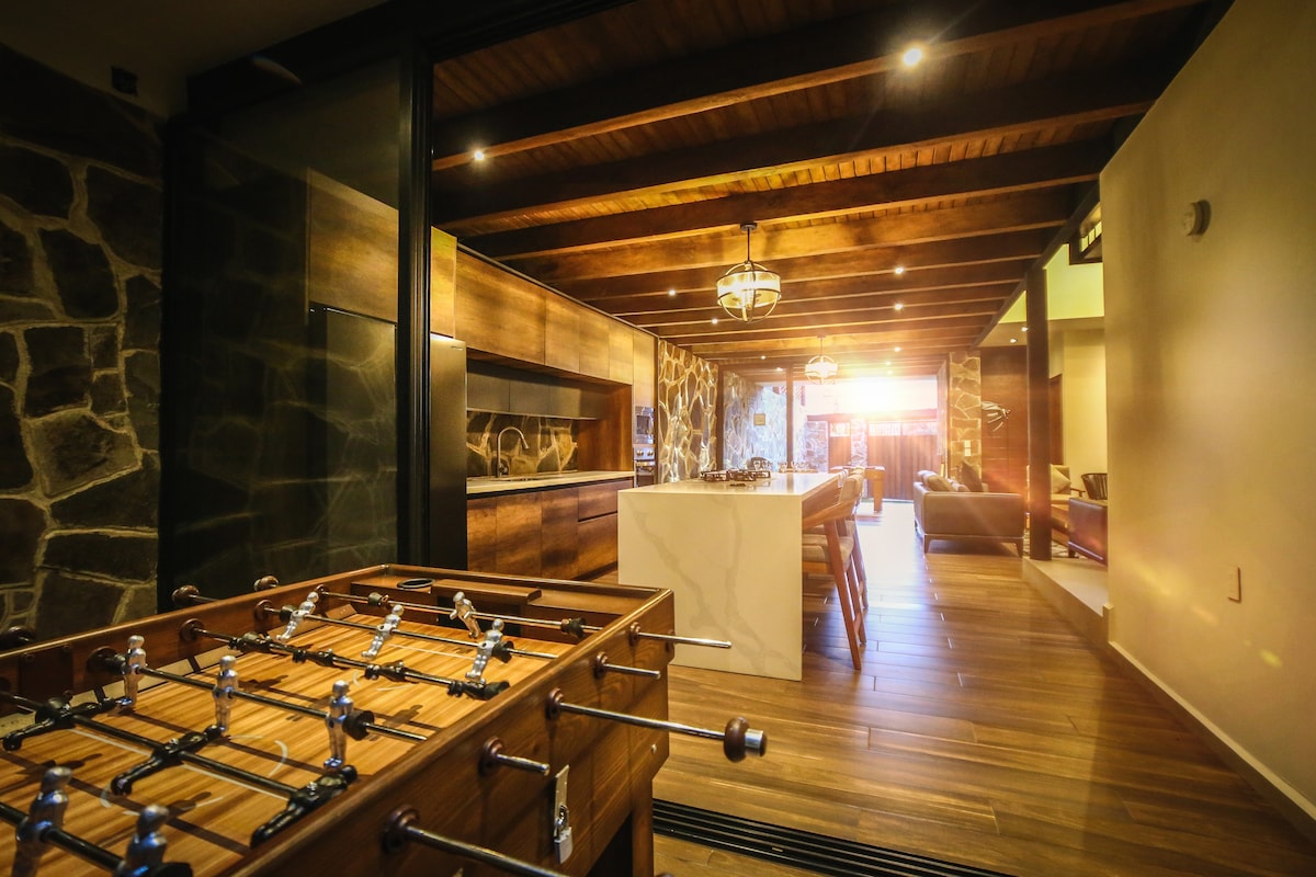 Cabana em Mazamitla com design único que você tem que conhecer por si mesmo! 1 quarto no andar de cima com cama king size, sofá-cama no piso térreo, banheira com vista para um jardim privado, TV LED inteligente com Netflix, Disney + e internet Starlink. Fica a apenas 7 minutos da praça municipal de Mazamitla.
