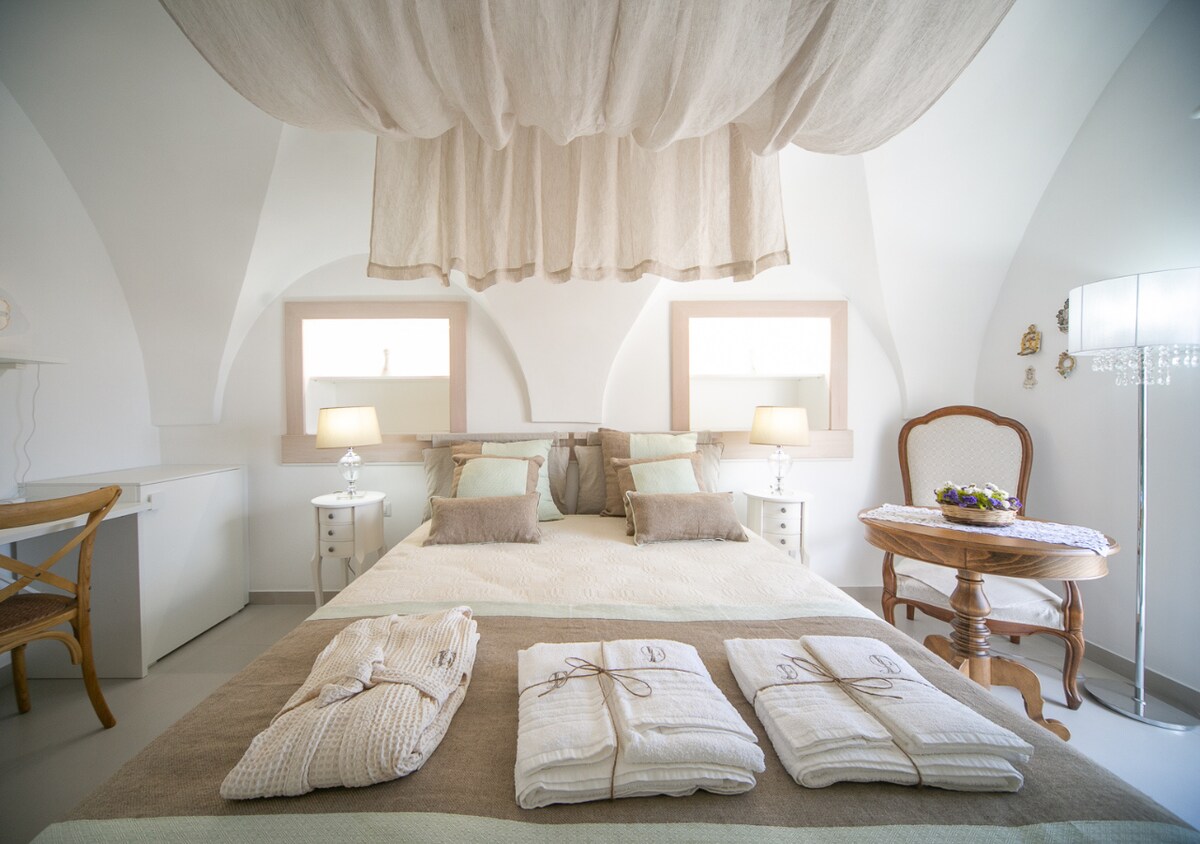 Nosso b&b foi construído dentro de um trullo formado por 3 cones e localizado no centro histórico e turístico de Alberobello, um patrimônio da UNESCO. O trullo foi recentemente renovado respeitando todas as características históricas e arquitetônicas da estrutura sem renunciar aos confortos modernos. Além disso, tem um grande jardim à disposição completa dos clientes apenas com banheira de hidromassagem. Todas as manhãs, um café da manhã completo será servido dentro do seu quarto, gentilmente preparado pela Mamma Nunzia.