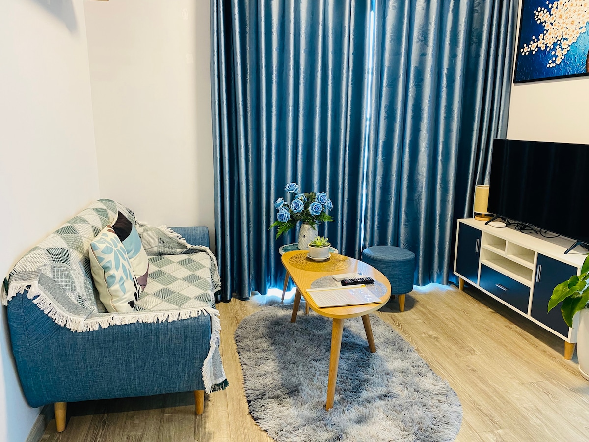 The apartment is designed in a minimalist yet cozy style, offering a peaceful and relaxing atmosphere. Enjoy the green park view right in front of the building – perfect for morning meditation or a gentle walk. Just to the left is the Japanese-style onsen and hot water swimming pool, where you can unwind after a long day. One building away is West Bay food street, featuring a wide variety of delicious cuisines from Asia to Europe, along with plenty of tea and coffee shops.