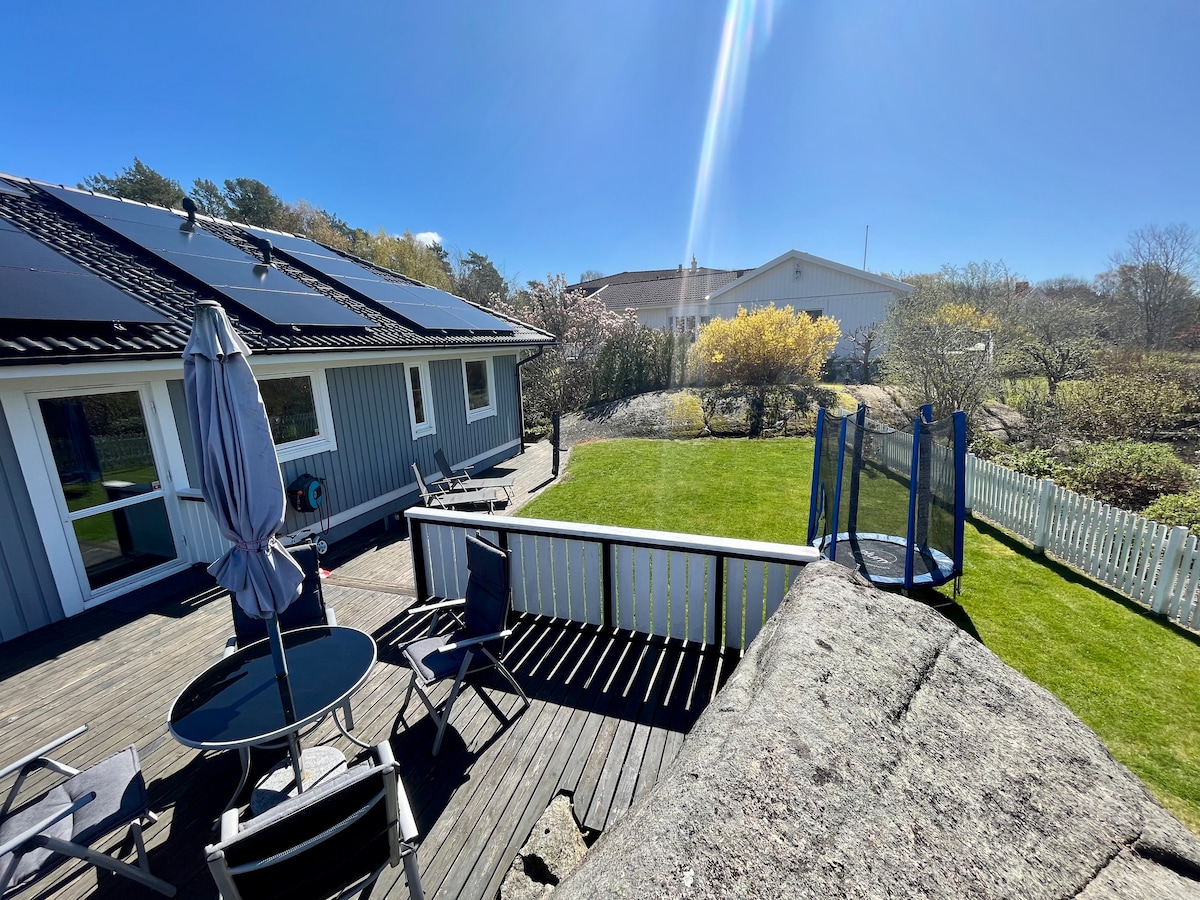 Relaxe neste espaço único e tranquilo. Uma localização maravilhosa com uma doca privada e uma praia. Aqui você tem uma vista maravilhosa do Gullmarsfjord, onde há um campo de golfe, trilhas para caminhadas, área de natação, pesca, natureza de caiaque é exótica na área e muita história cultural. A casa é uma casa de veraneio construída em 1950 e foi renovada e ampliada em 1980, renovada novamente em 2000 e renovada pela última vez em 2022. Uma típica casa de veraneio em um ambiente rústico decorado com cozinha moderna e banheiros modernos. A decoração é rústica e de bom gosto.