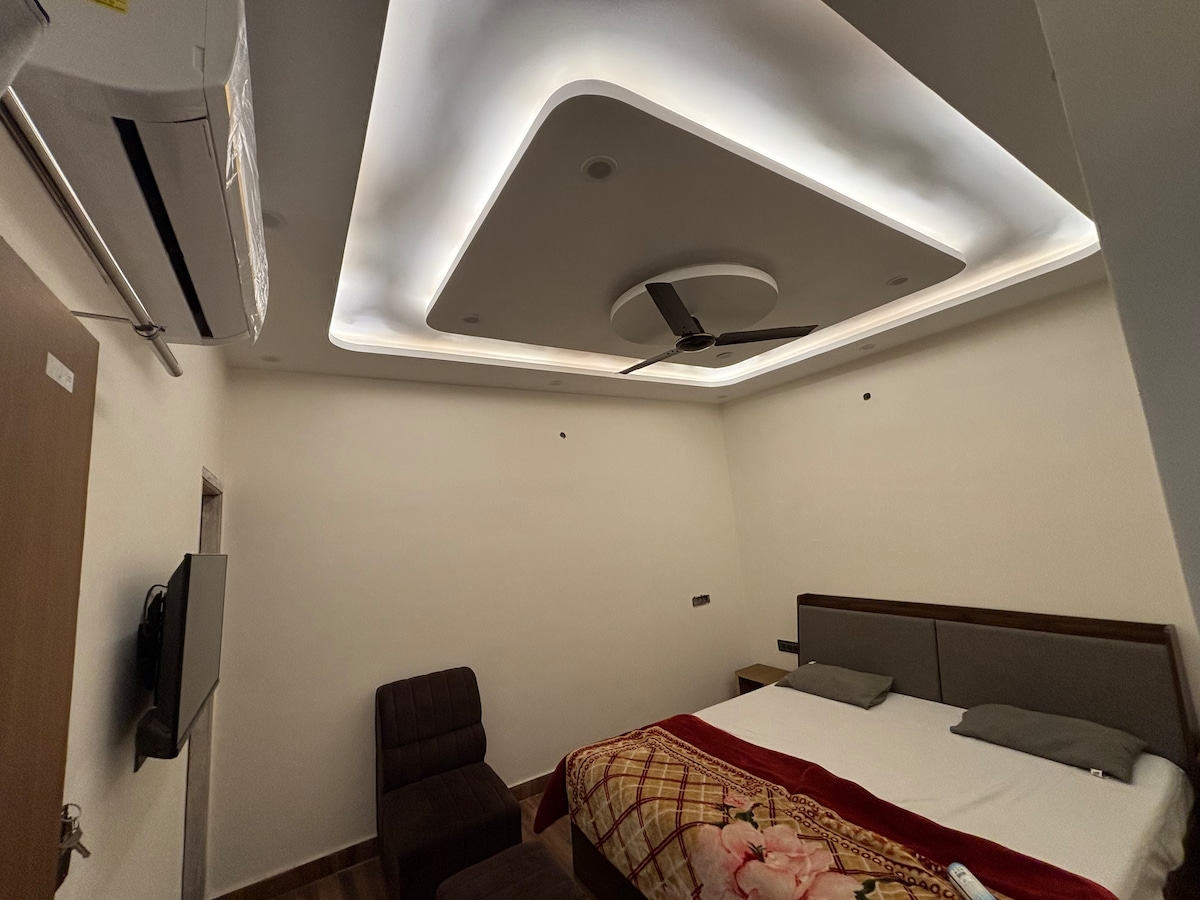 Fuja para um bangalô verde e grandioso em Brij Enclave (VIP Colony) — a área residencial mais tranquila e premium de Varanasi, com acesso imbatível à cidade. Sua suíte privativa palaciana 6 apresenta: ✔ Sono repousante garantido por um ambiente calmo e verde. ✔ Wi-Fi de fibra de alta velocidade. ✔ estação de trabalho. ✔ Smart TV, ar-condicionado e banheiros elegantes. Sankat Mochan, BHU, Assi Ghat e Banaras ficam a apenas 10 minutos de distância, com acesso fácil e sem trânsito ao aeroporto. Desfrute de luxo, paz e máxima conveniência!