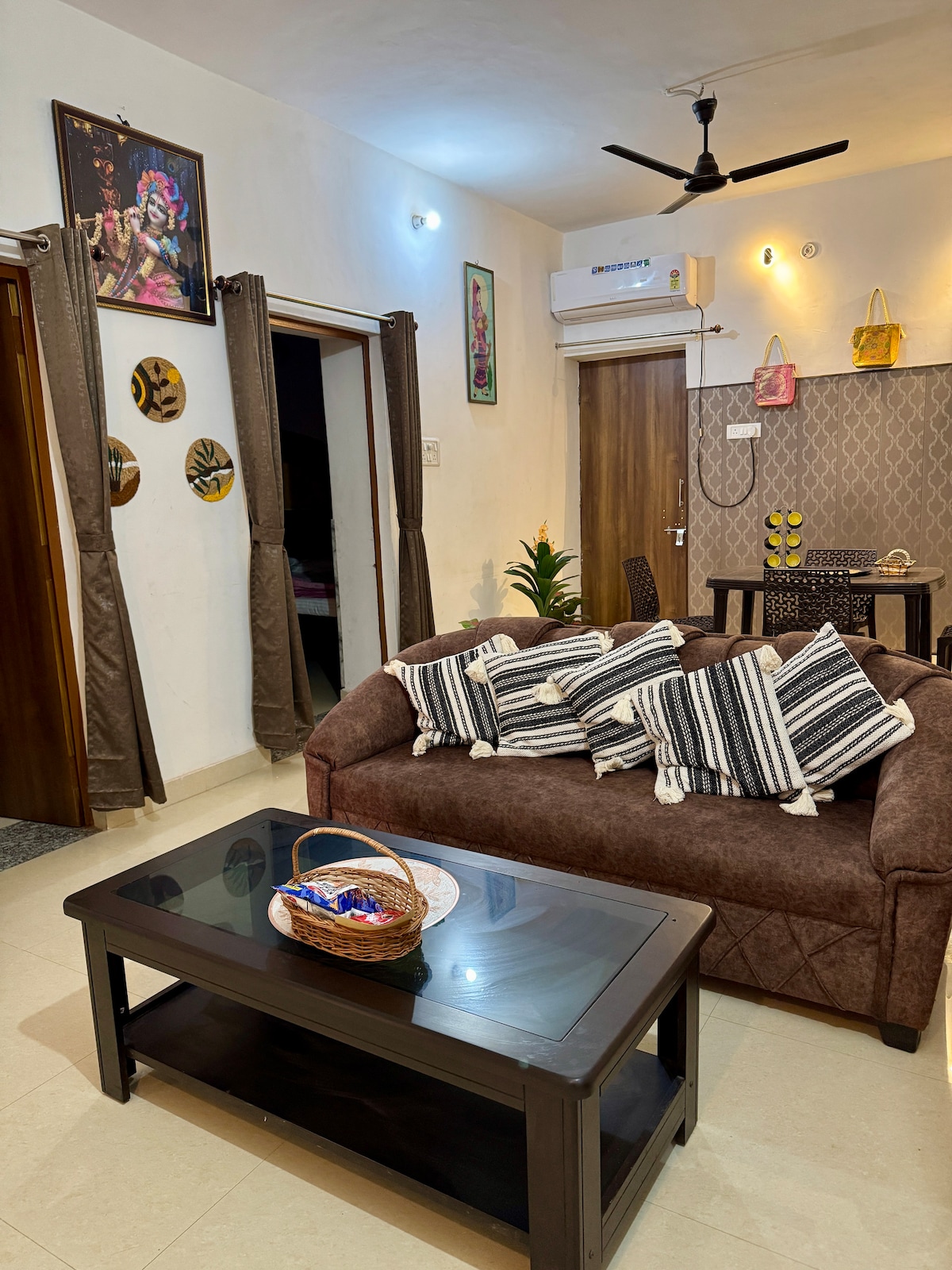 Bem-vindo ao Kashi Gharana | Apartamento com 2 quartos, sala e cozinha da Luxe Um apartamento com 2 quartos, sala e cozinha, tranquilo e cuidadosamente projetado, que combina conforto moderno com a atmosfera de Kashi. Totalmente mobiliado, com ar-condicionado, Smart TV, Wi-Fi e cozinha funcional. Perfeito para famílias, casais e estadias longas, com uma localização tranquila, mas bem conectada. O que você vai adorar: - Espaçoso 3BHK com interiores premium - Totalmente mobiliado com ar-condicionado, Smart TV e Wi-Fi - Cozinha bem equipada e área de jantar - Varandas aconchegantes e ambiente sereno - Perfeito para famílias, casais e estadias longas