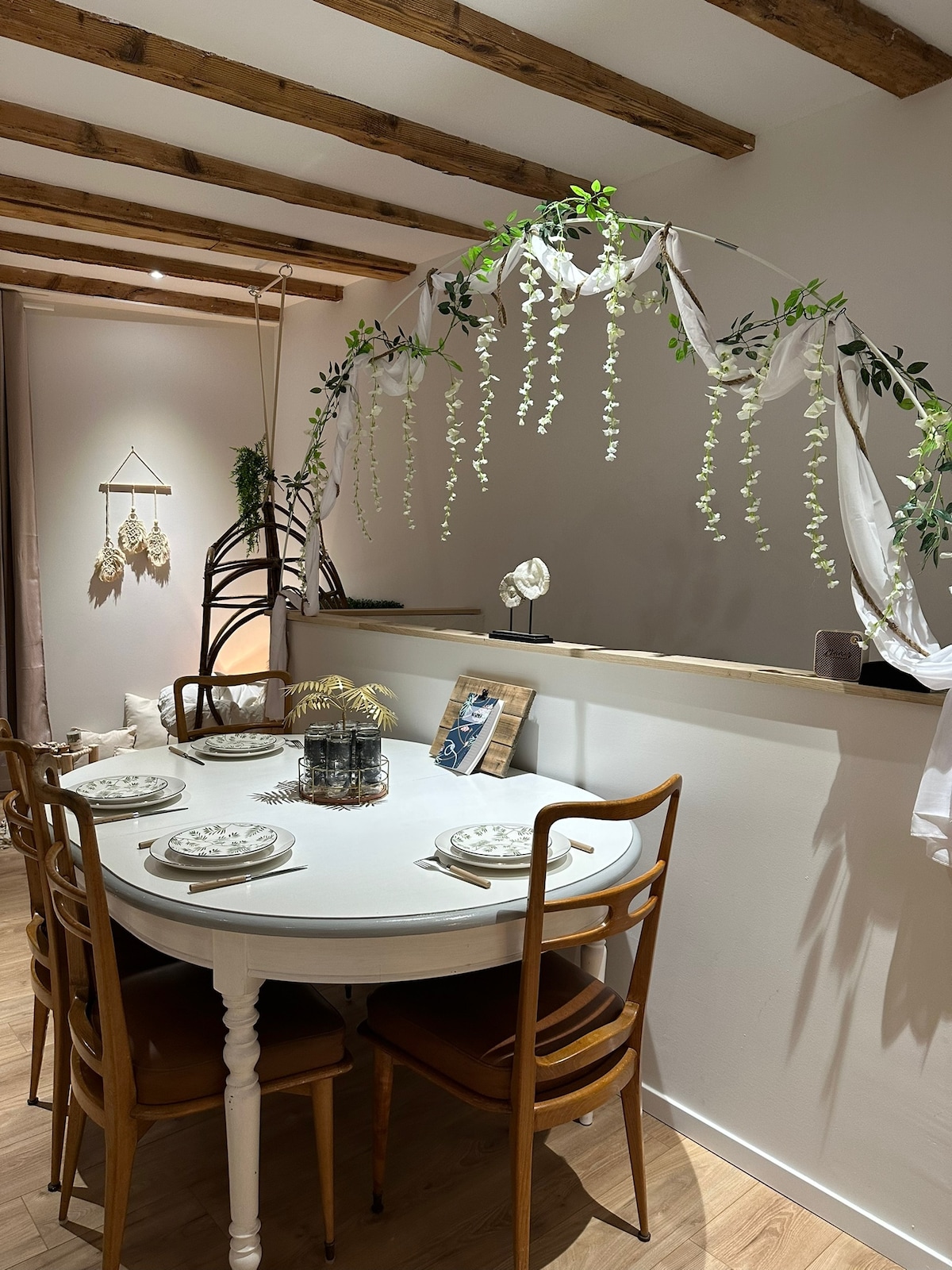 Descontraia-se neste apartamento no centro da cidade de Mâcon. Totalmente reformado para fazer você viajar para as ilhas do Pacífico: parede verde, ovo suspenso, pia de madeira... um verdadeiro casulo para relaxar. Você terá à sua disposição 60 m², incluindo uma sala de estar, uma área de leitura, uma sala de jantar, um banheiro separado, uma cozinha e uma suíte principal com banheiro em mármore verde. 🔐Chegada independente 🍬Brindes 🛌 Roupa de cama e toalhas fornecidas ☕️ Cápsula Nespresso