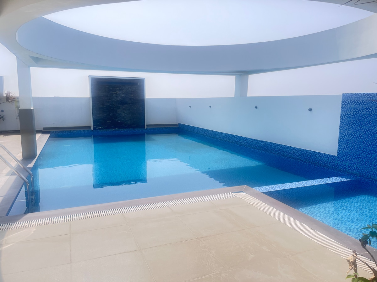 We welcome you to Laus Deo! Embrace the tranquility high above the city and make your stay truly memorable in our fully furnished, couple-friendly corner flat on the 9th top floor. room 1: one king size bed with AC bedroom. room 2: one sofa bed with AC bedroom Extra beds on demand. Amenities: TV with high-speed WiFi,fridge,washing machine,kettle,geyser , kitchen equipped with basic cooking utensils and gas connection,wardrobes, RO water purifier and a dedicated parking space (open parking)