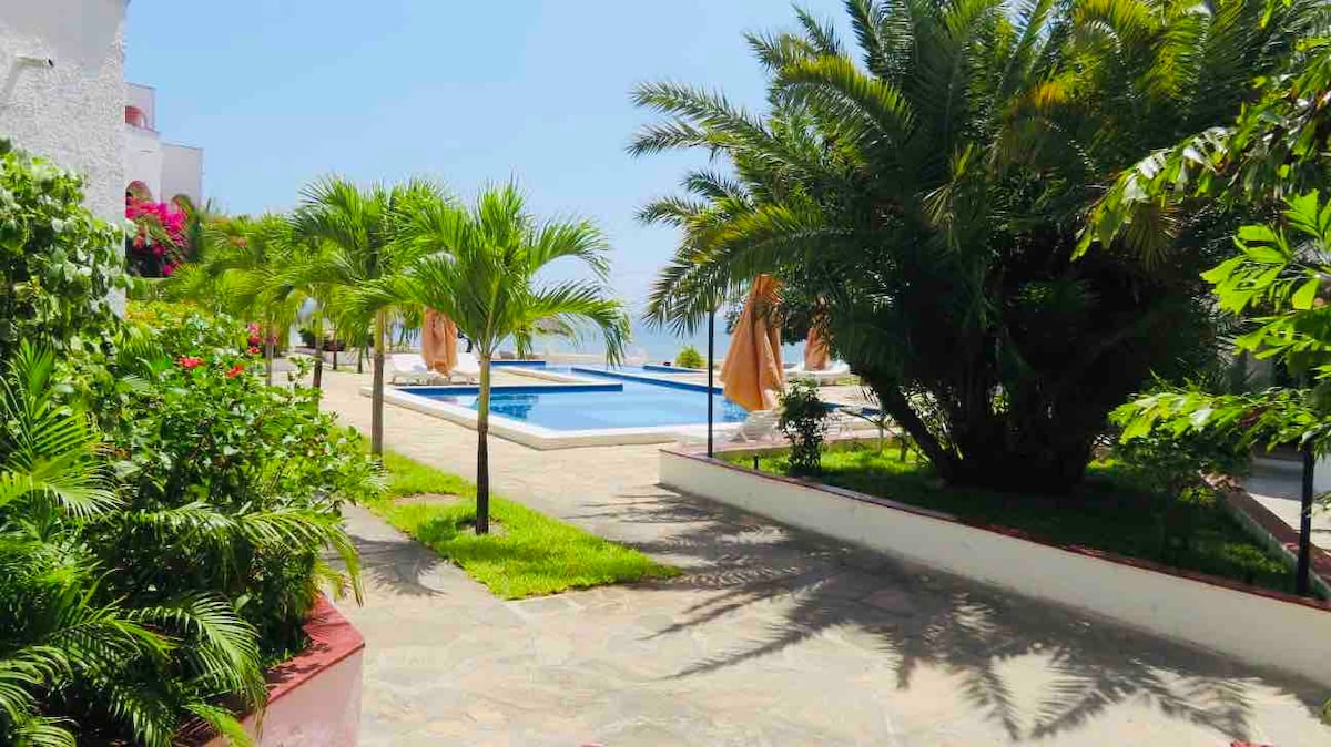 Condomínio em frente à praia com piscina
