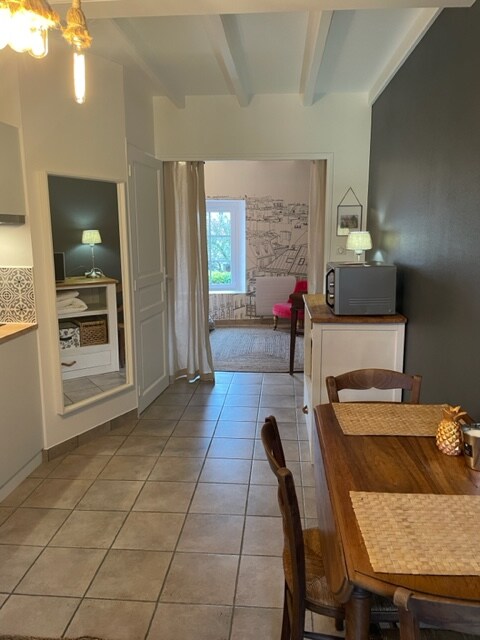 Logement indépendant de 60 m², calme et chaleureux, au charme de l’ancien, avec pierres apparentes et poutres d’époque, décoré avec soin et entretenu avec attention. Les lits sont faits à l’arrivée, la literie est très confortable, des produits de toilette sont à disposition, et chaque détail est pensé pour que vous vous sentiez immédiatement à l’aise, dans une décoration personnalisée et soignée. Vous profitez d’un SPA privatif intérieur, pour de véritables moments de détente en toute intimité.