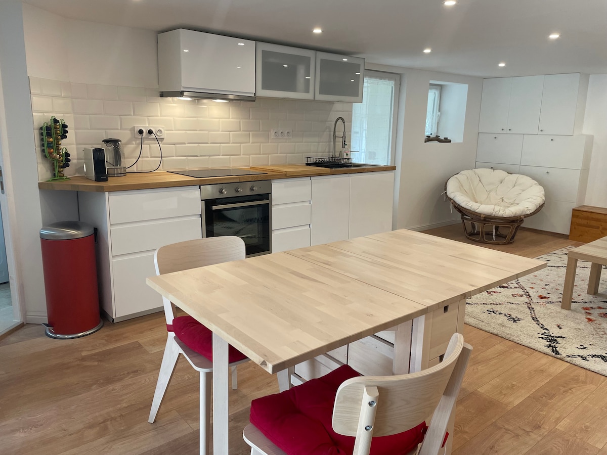 Apartamento de 34 m² integrado à nossa casa, com entrada independente. Novo (2024) e bem isolado (portanto, fresco no verão). Bem equipado com equipamentos de cozinha, forno, micro-ondas, máquina de lavar louça, máquina de lavar roupa, rack de secagem... 1 cama de casal + cama extra em sofá-cama para 1 criança/adolescente - Cama de bebê mediante solicitação. Localizado a 5 minutos a pé de pontos de ônibus para Aix en Provence, a 5 minutos a pé de lojas e a 15 minutos a pé do coração da aldeia.
