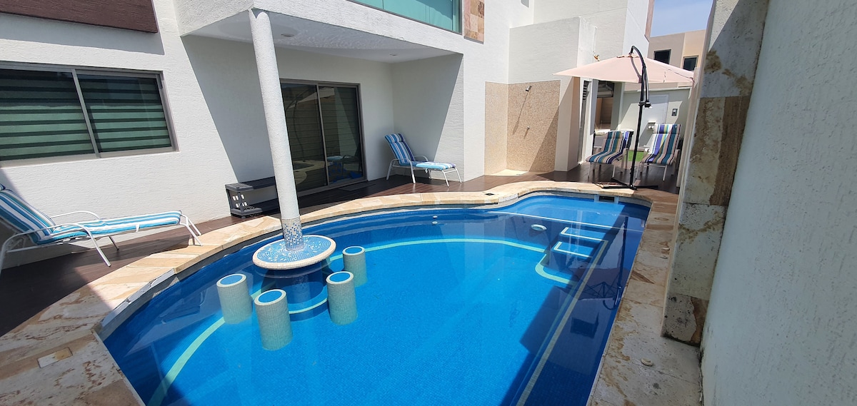 Venha desfrutar das águas cristalinas da nossa lagoa artificial e relaxar na nossa piscina no ótimo clima do porto de Veracruz dentro de um bairro tranquilo! Bem-vindo e obrigado por mostrar interesse na Casa Girasol! Estamos disponíveis para responder às suas perguntas em breve. Estamos a 5-8 minutos do Aeroporto Internacional de Veracruz. O condomínio é muito tranquilo e seguro, com supermercados a 2 km de distância e um Oxxo a 600 metros do alojamento.